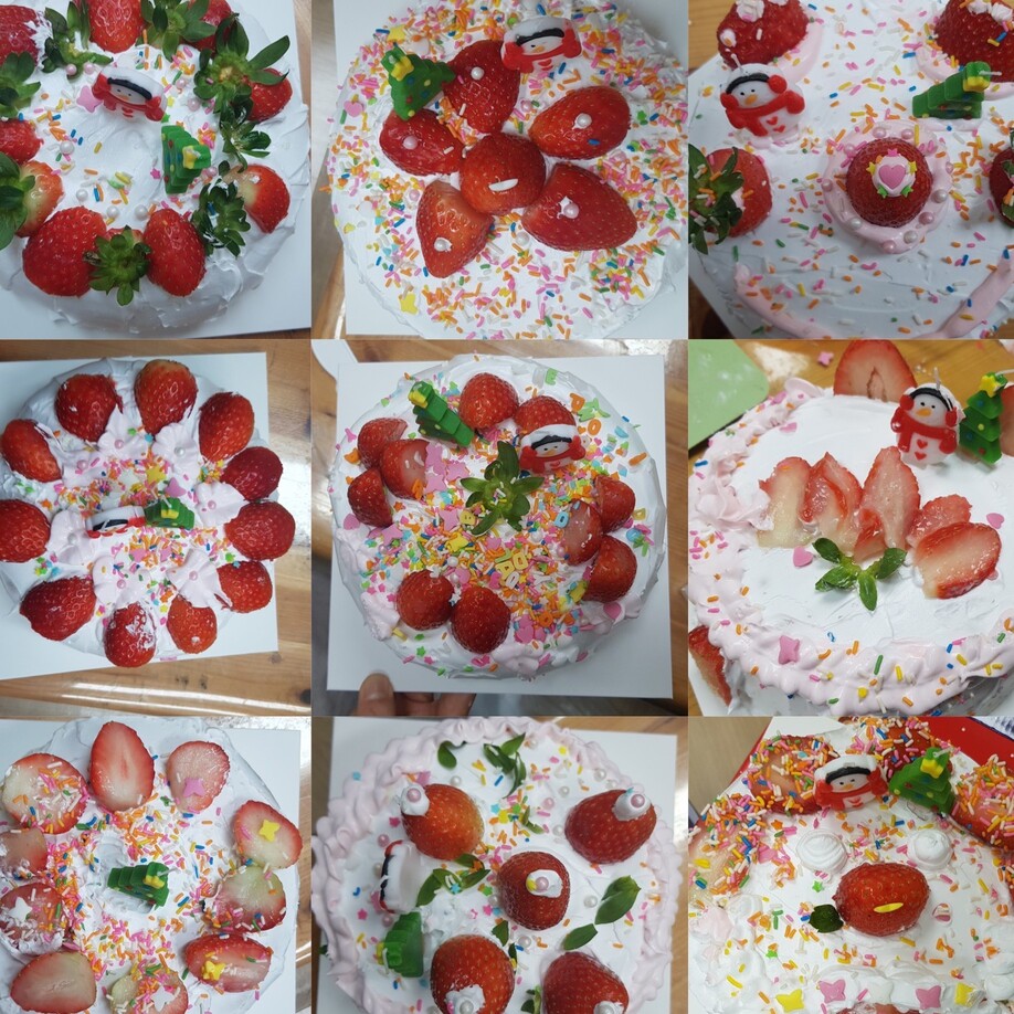 크리스마스를 앞둔 기념으로 케이크를 만들었습니다~ 선물을 받은 것 같다며 좋아하는 모습에 뿌듯해지네요.