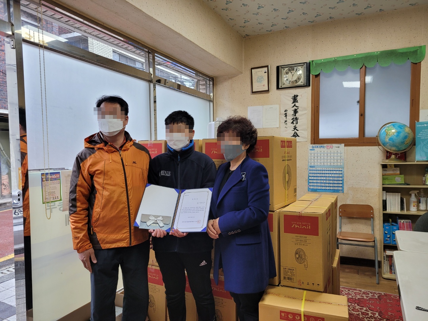 초등학교 1학년때부터 우리 센터를 이용하고 있는 중학생 아동이 그동안 받은 후원에 감사하다며 대구시 북구에 소재한 지역아동센터에 선풍기를 각 1대씩(총45대) 기증하였습니다. 이에 북구지역아동센터협의회에서 이 아동에게 표창장을 수여하는 뜻깊은 일이 지난 금요일에 있었습니다.