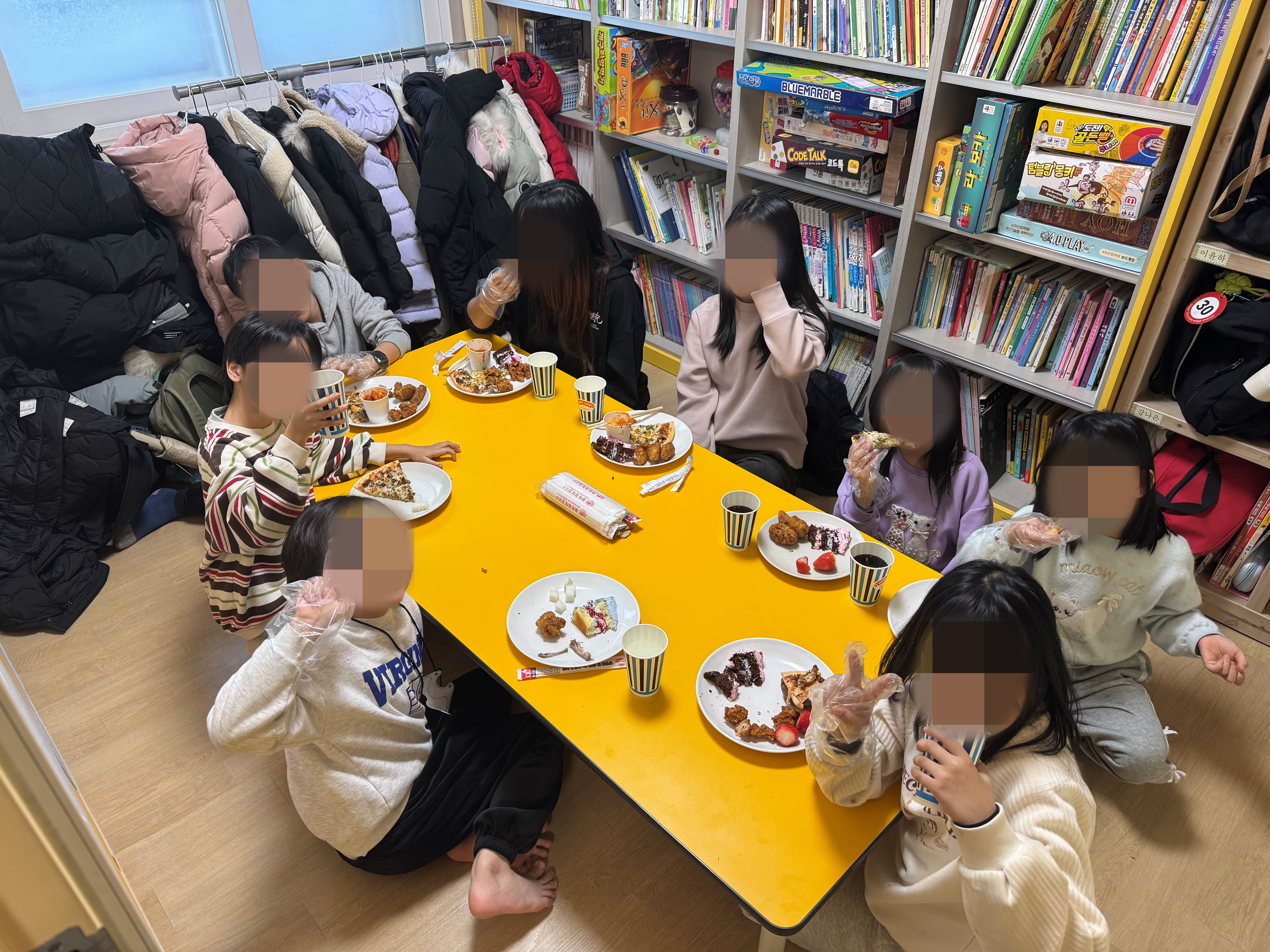친구들과 함께 맛있는 음식을 먹으며 파티가 끝난 후에는 보드게임을 하며 즐거운 시간을 보냈습니다:)