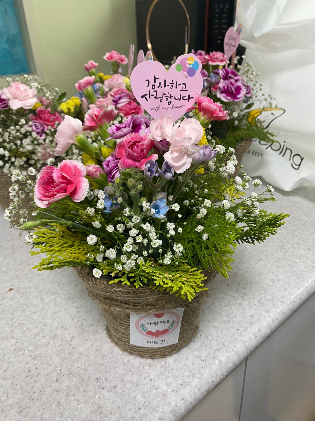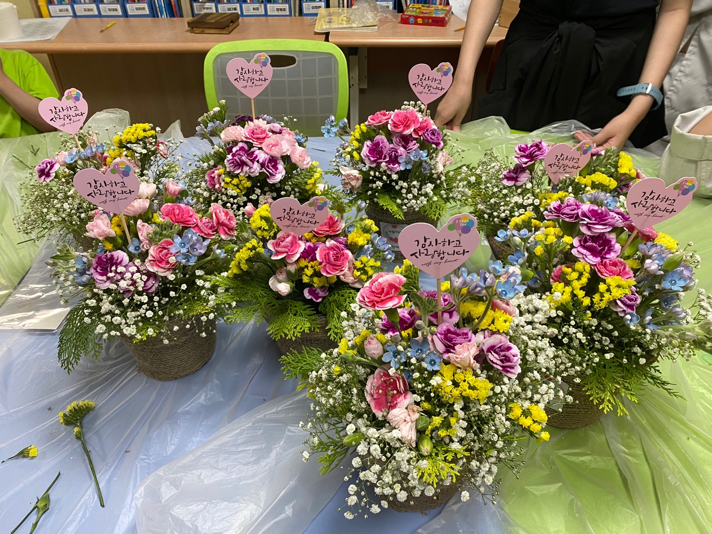 예쁜 카네이션과 꽃을 만지며 꽃향기도 맡으며 부모님께 감사하는 마음을 담아 예쁜 꽃바구니를 만들어 보았습니다.