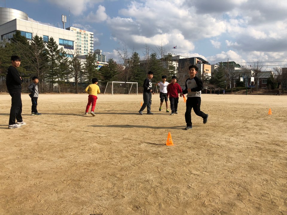 센터 근처 학교인 교문초등학교 운동장에서 체육 프로그램을 진행했습니다.