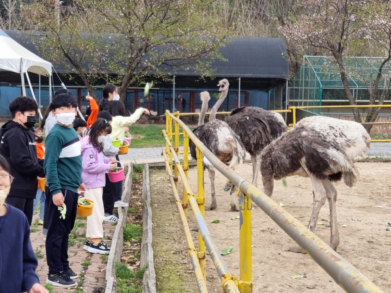 오전에는 타조농장아이들세상에 가서 다양한 동물들에게 먹이를 주는 체험활동을 하였습니다.