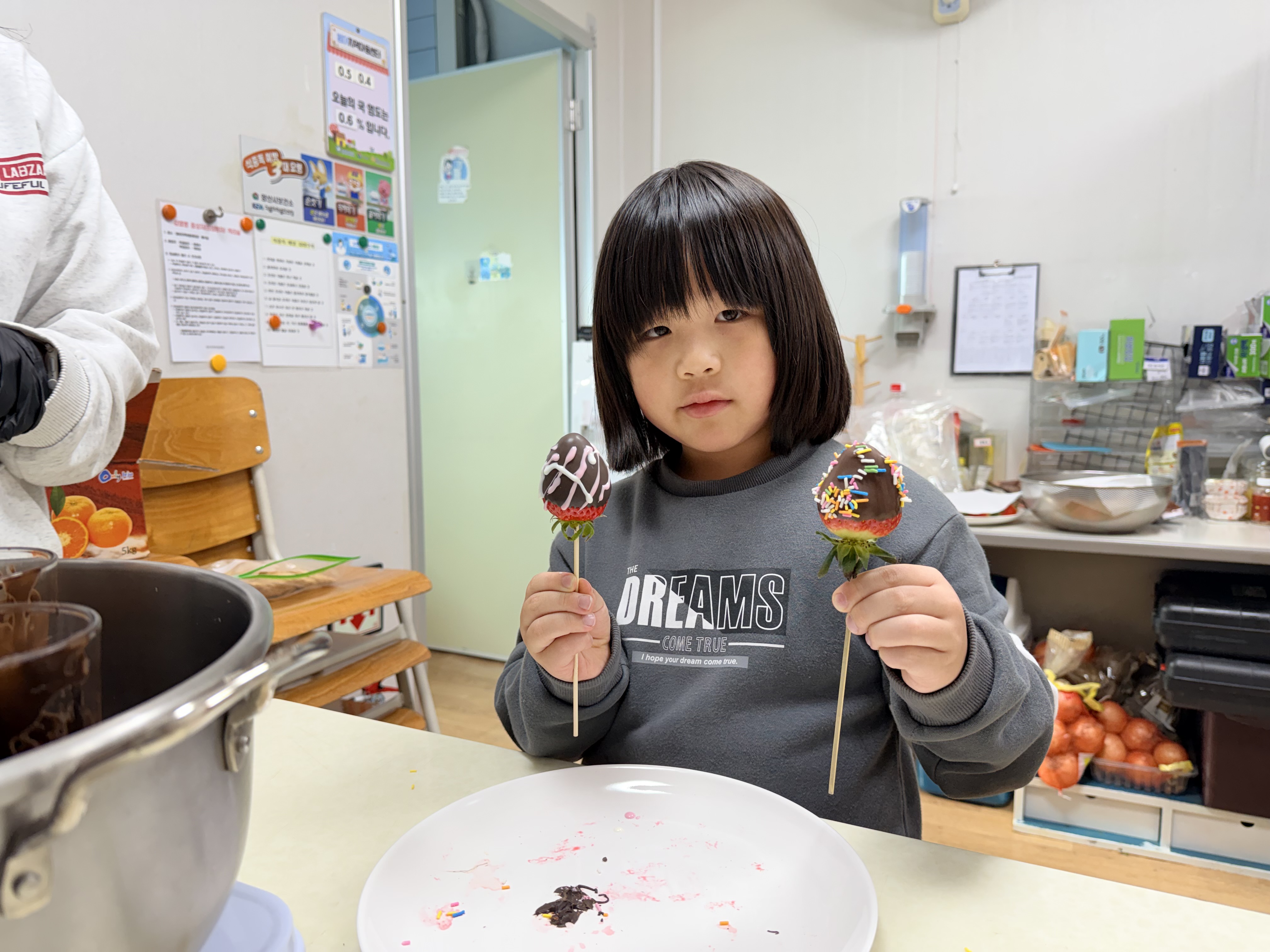2월 6일 딸기퐁듀를 만들어봤습니다. 녹인 초콜릿에 딸기를 담군 후 초코펜으로 꾸미니 먹기 아까울정도로 이뻤습니다