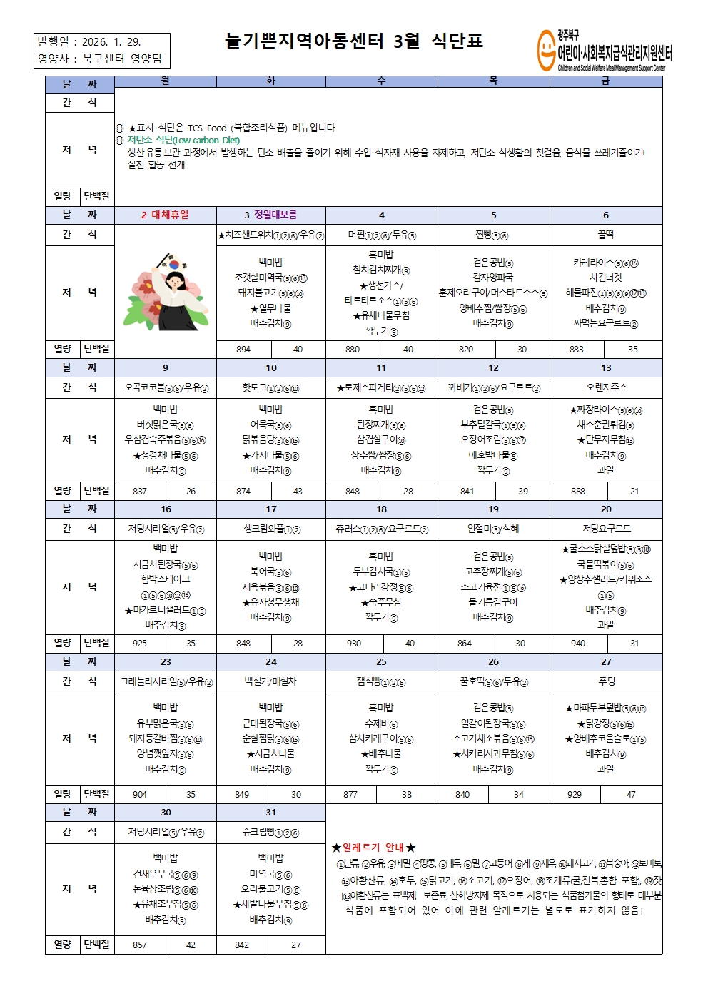 3월 식단표