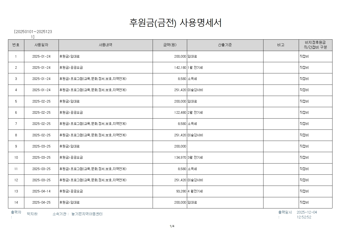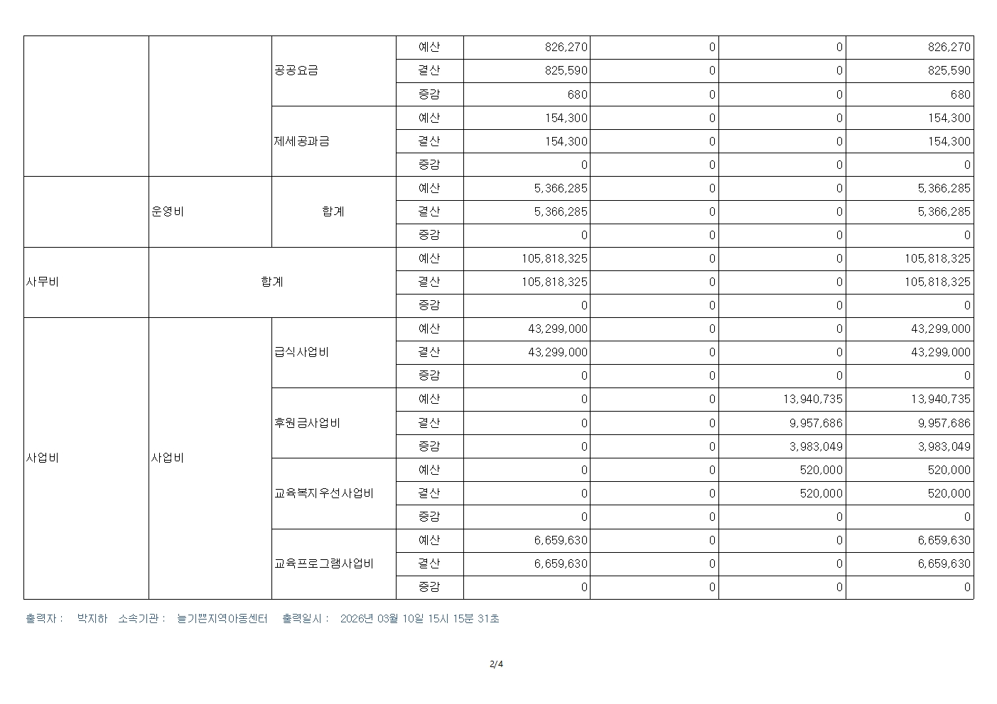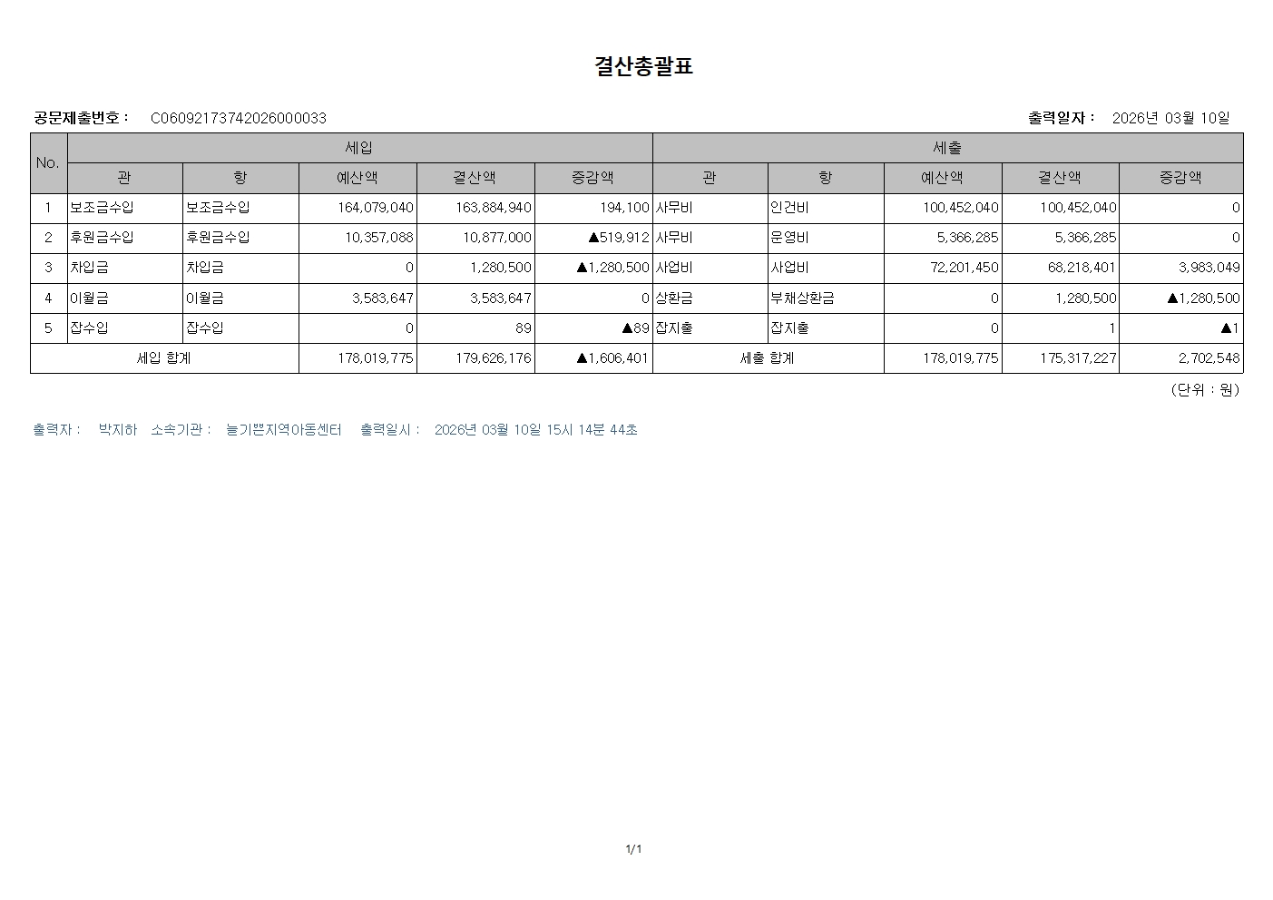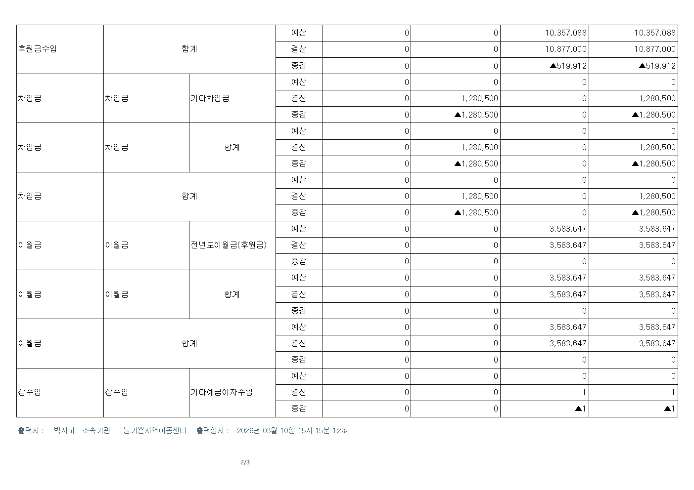 2025년 세입,세출 결산 및 후원금 수입,사용 결과 공고