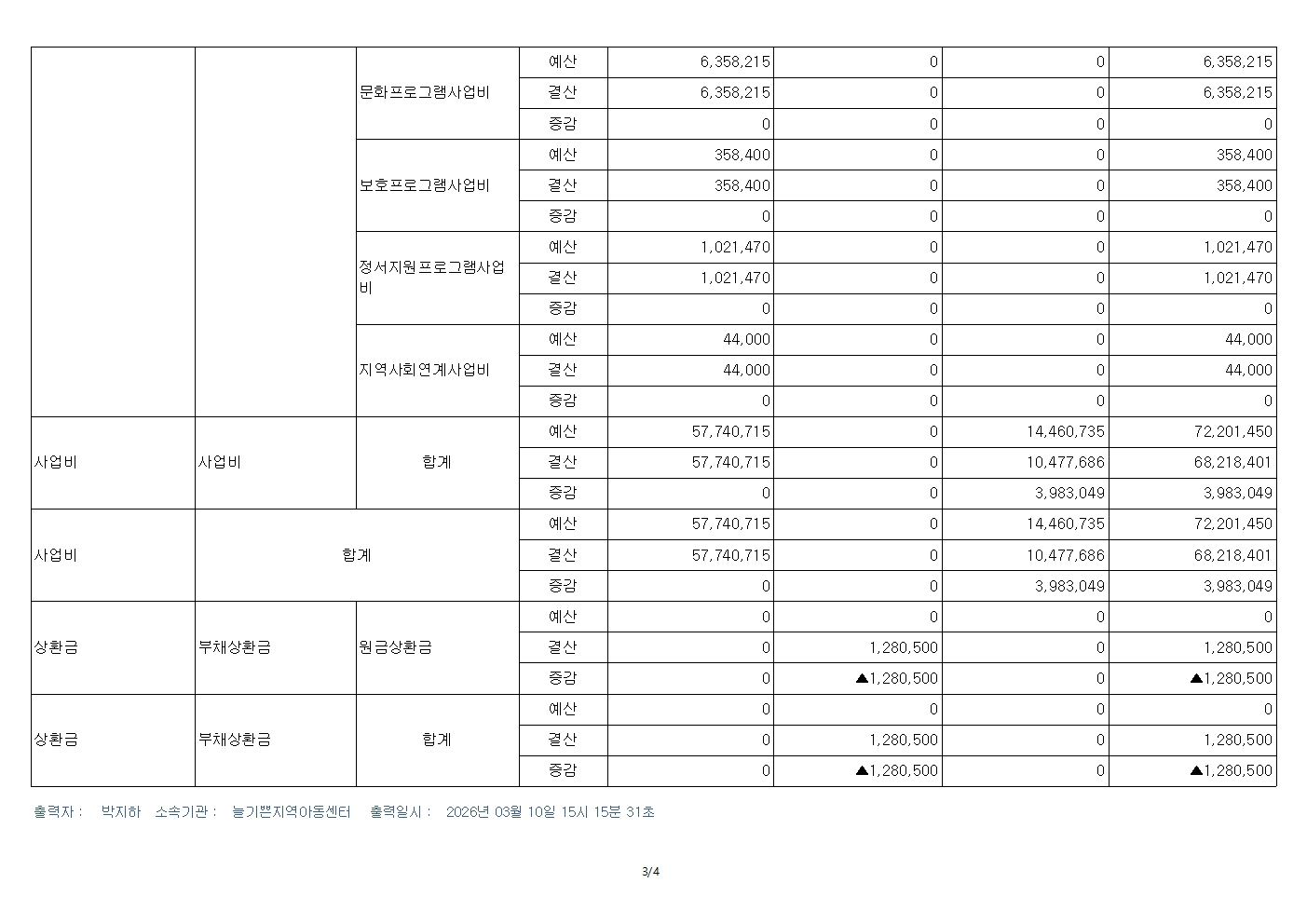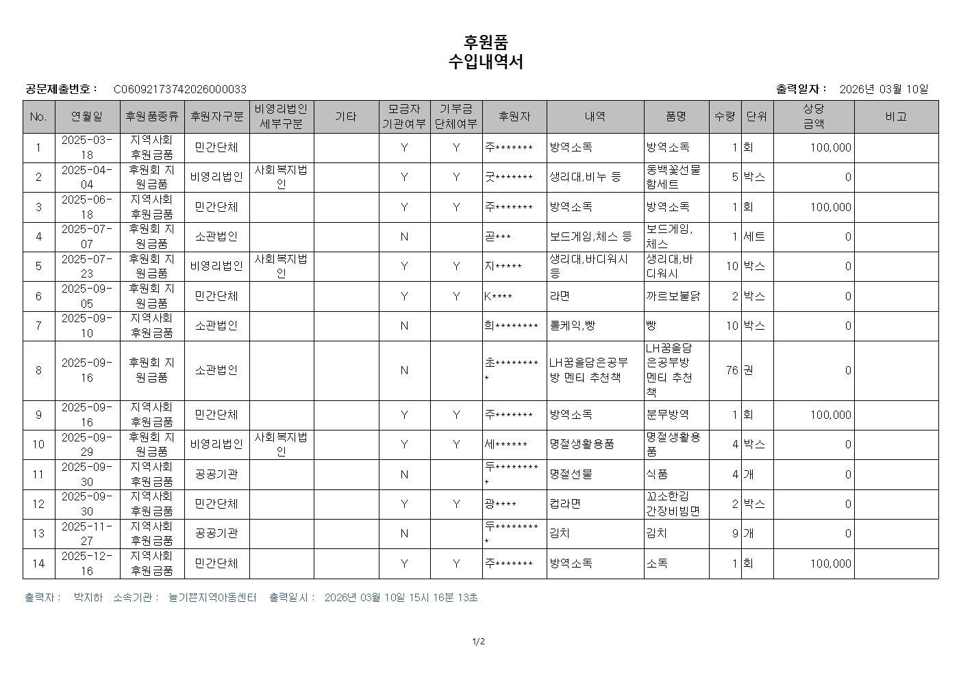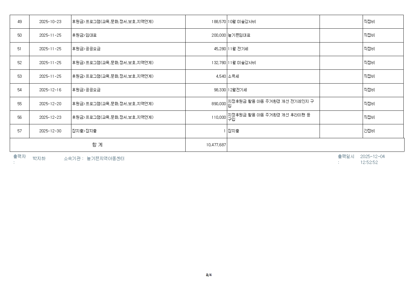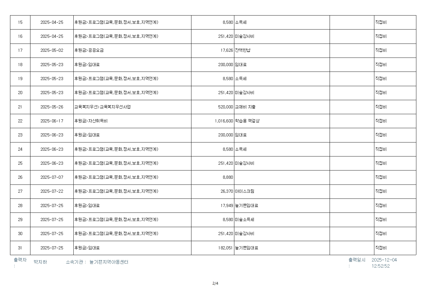 2025년 세입,세출 결산 및 후원금 수입,사용 결과 공고