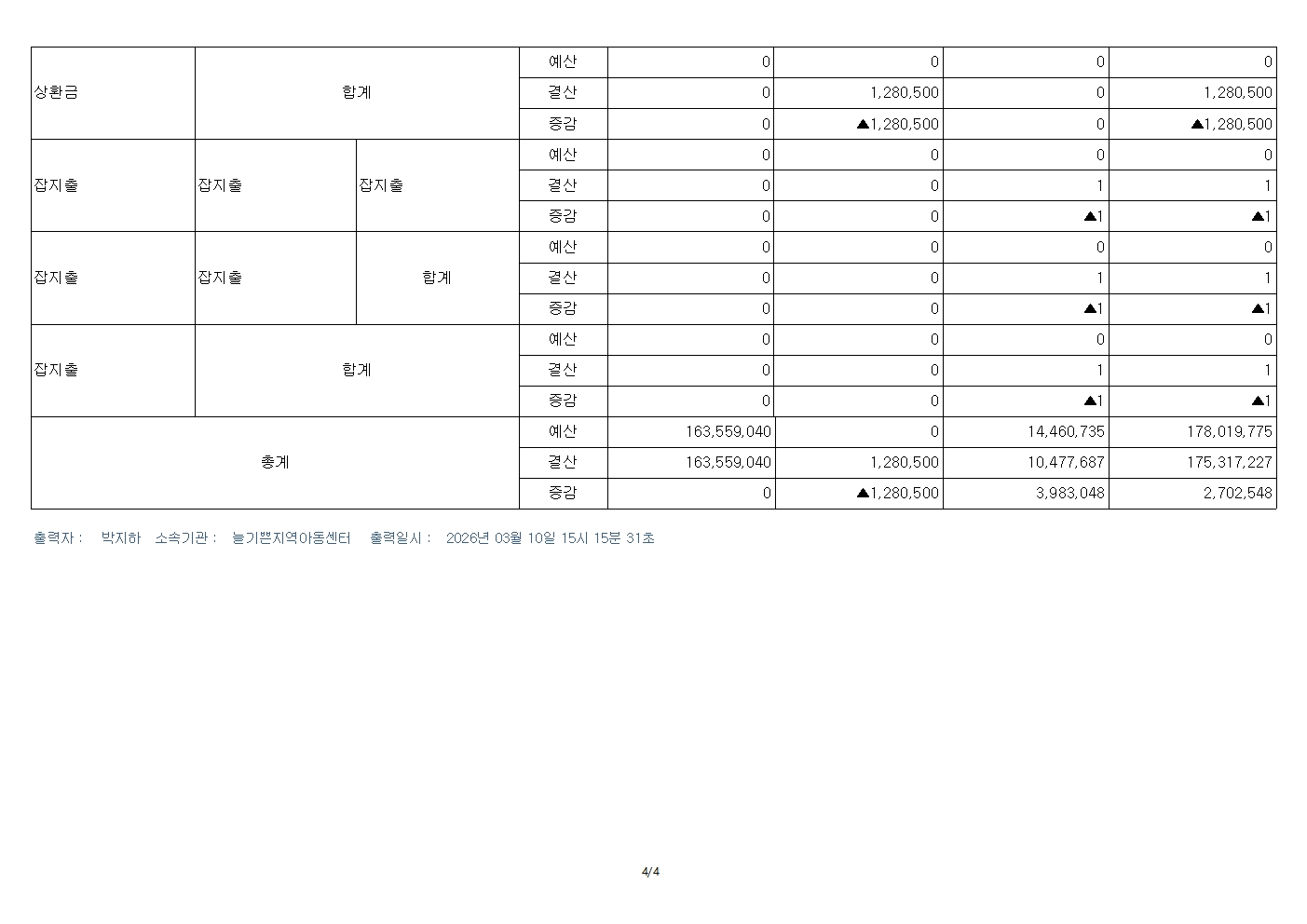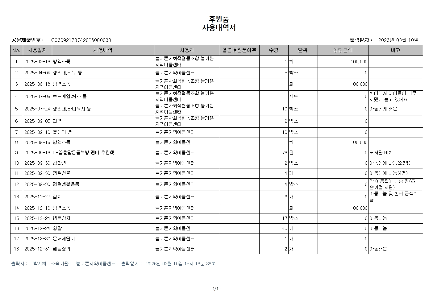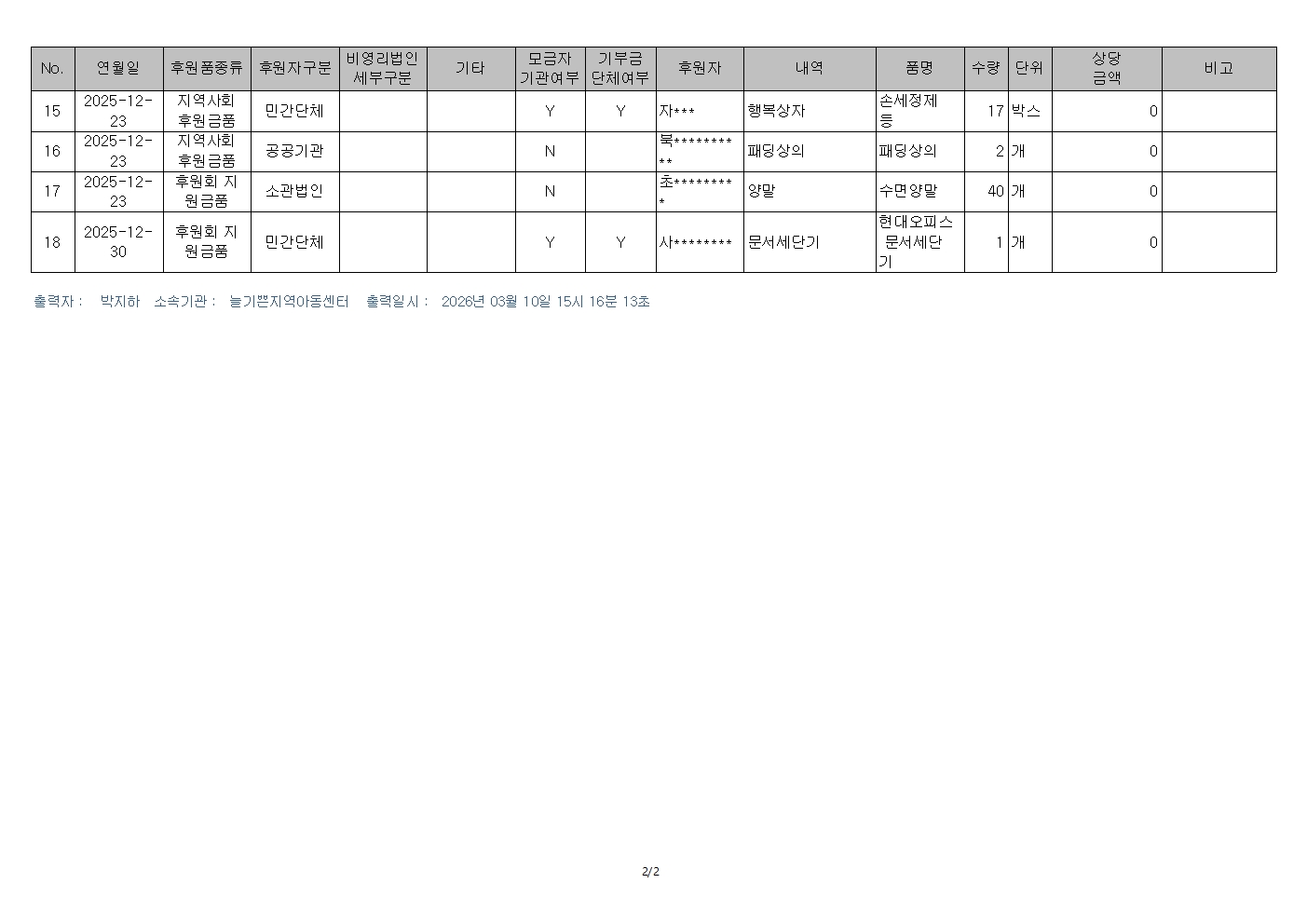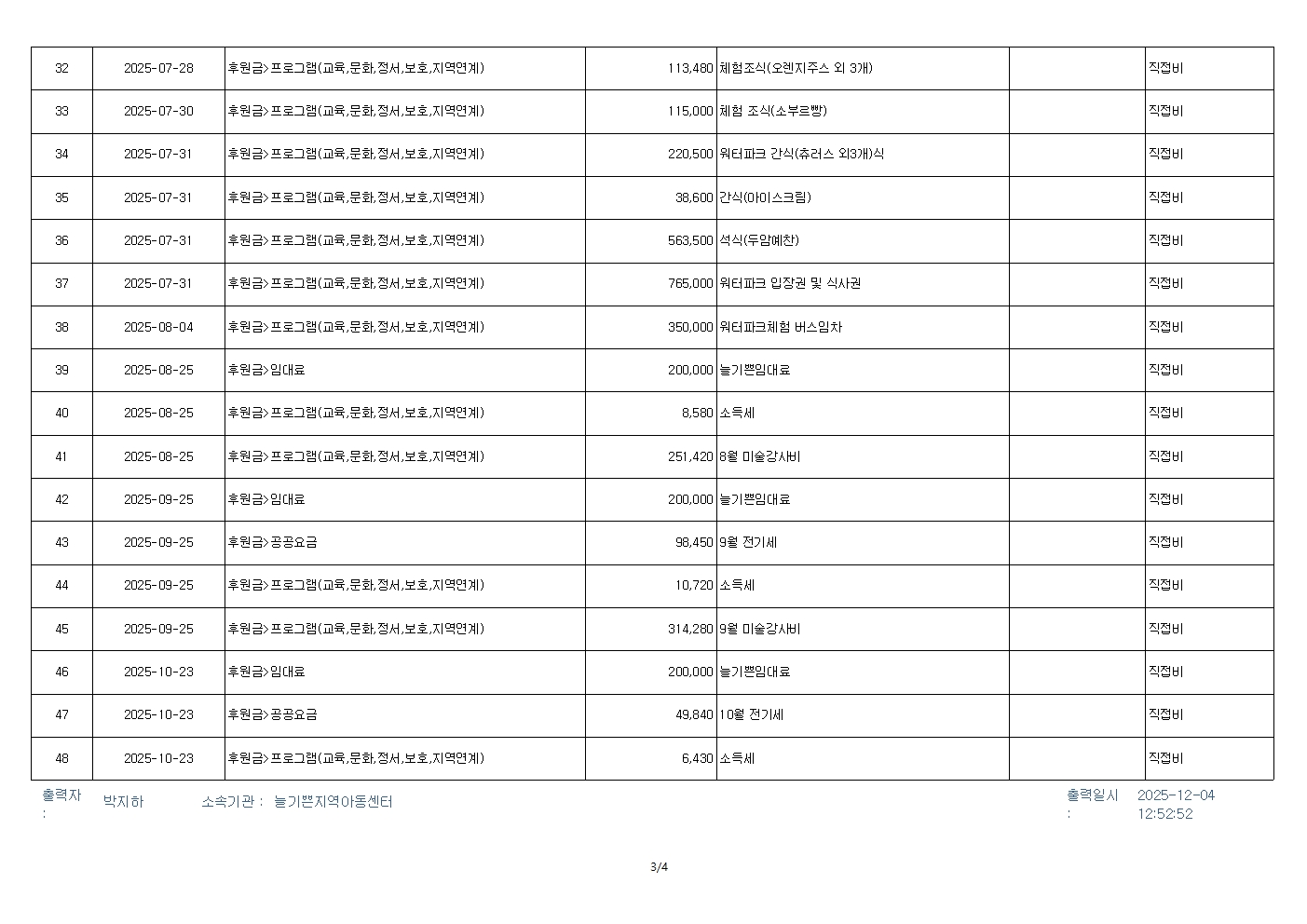 2025년 세입,세출 결산 및 후원금 수입,사용 결과 공고