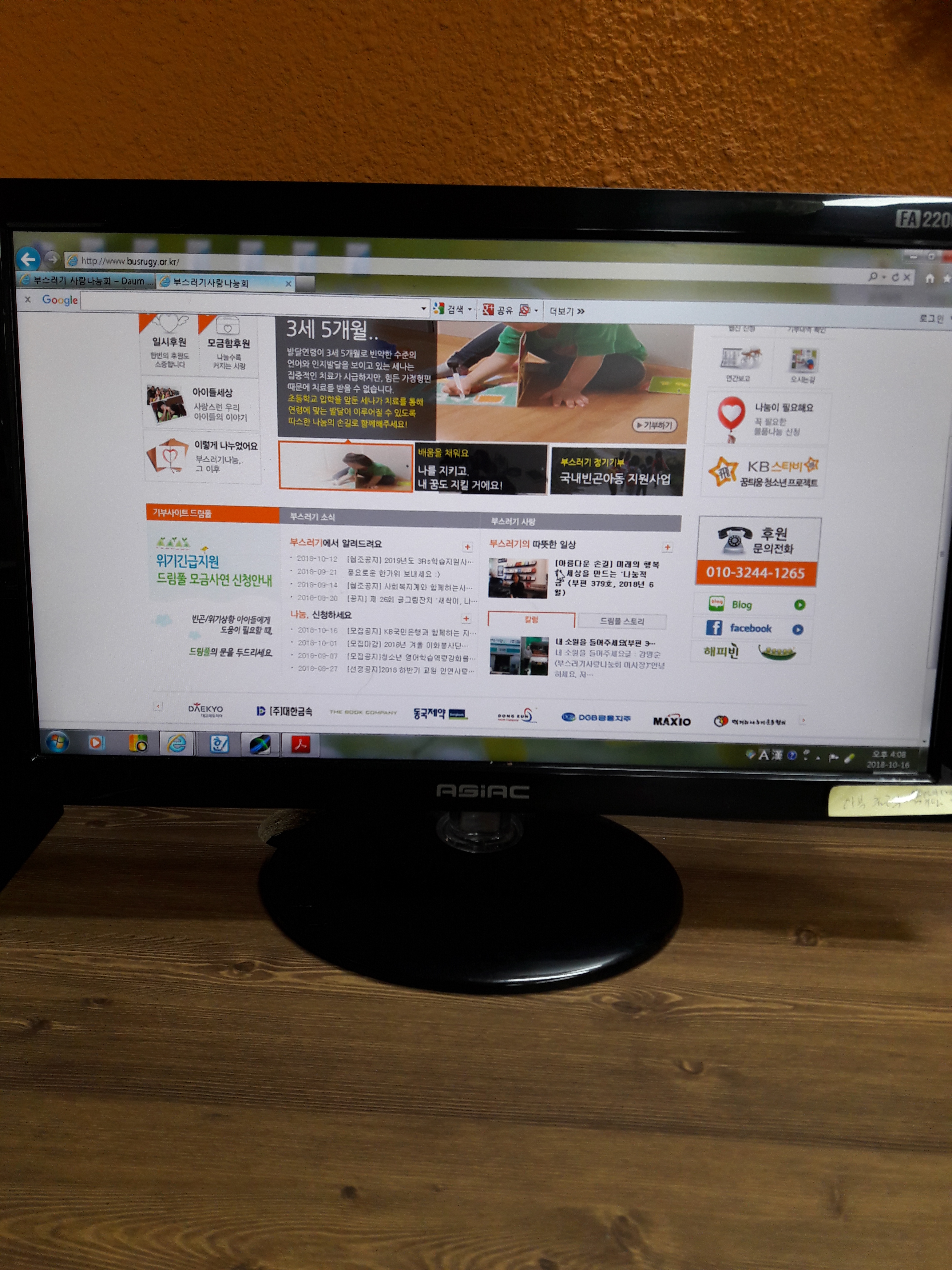 지금도 홈페이지가 열리지 않고 힘들게 열리더라도 화면이 다 보이지 않고 겹쳐 보여서 글을 쓴 것이 등록이 되지 않아 제 컴퓨터에서 다시 작성을 하고 있는 실정입니다. 아동센터 업무가 거의 컴퓨터로 진행이 되고 있는 상황에서 컴퓨터가 잘 작동이 되지 않아서 매일 업무의 스트레스에 더 추가가 되고 있습니다. 지금의 컴퓨터도 후원받은 것인데 5년이나 되어서 속도도 느리고 파일도 잘 열리지 않습니다. 하루 빨리 업무 처리에 원활한 컴퓨터가 생긴다면 아이들과 함꼐 하는 아동센터 생활이 더 즐겁고 업무에 대한 스트레스도 줄어들 것으로 생각이 됩니다. 감사합니다.