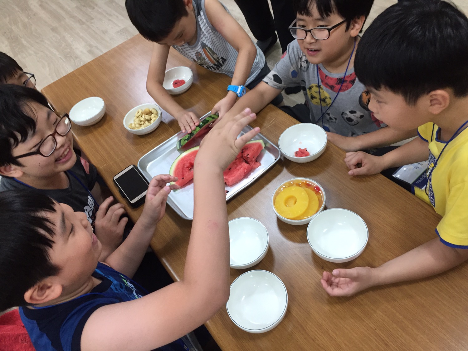 아이들과 친밀감을 도모할수 있도록 팀이름도 짜고, 레크레이션도 해보며 시원한 화체도 만들어 보는등 많은 활동을 하였답니다^^