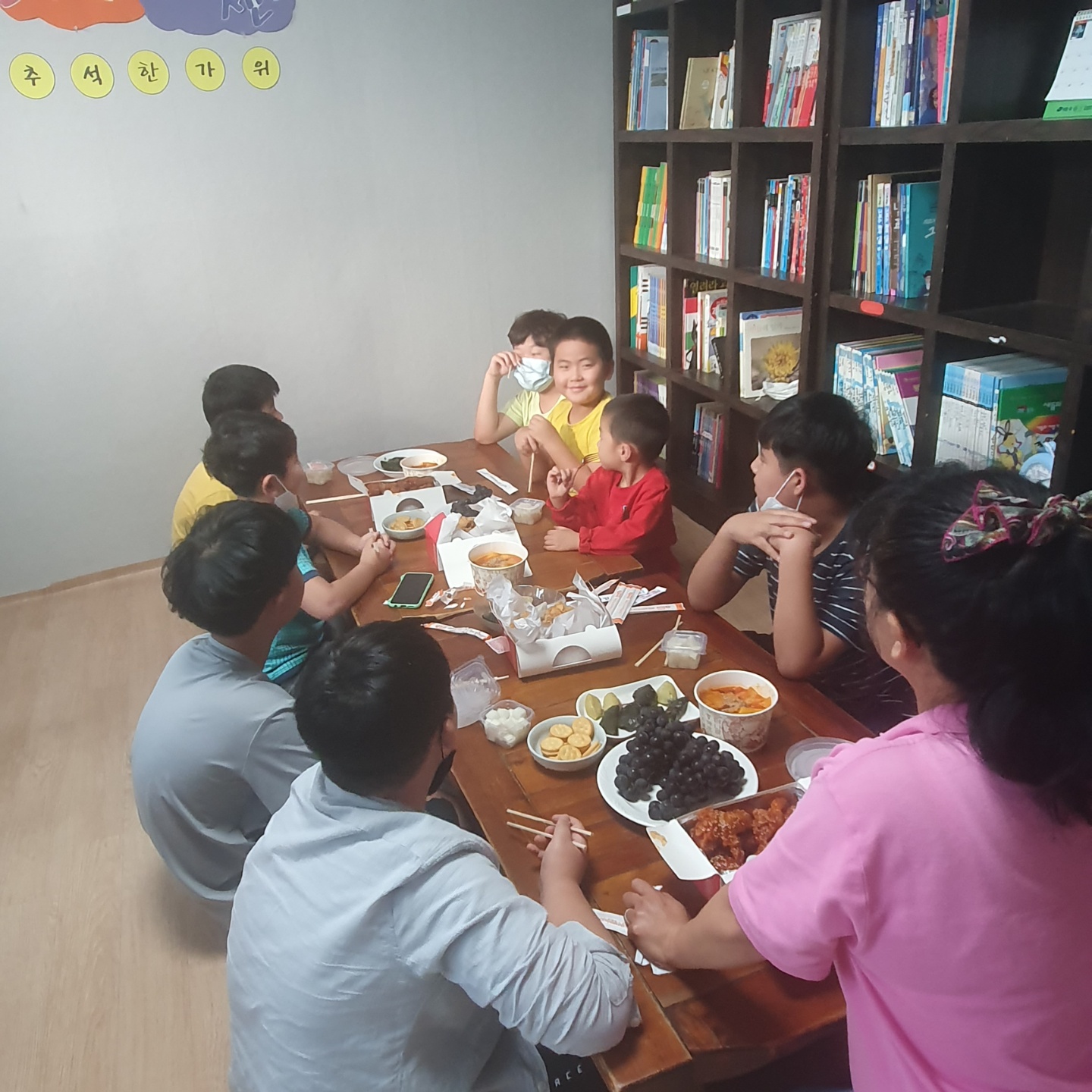 9월 28일 추석맞이 행사로 아이들과 송편빚기를 하면서 추석 명절 분위기도 내고 다 만든 송편들과 아이들이 좋아하는 음식을 준비해 아이들과 작은 파티를 하였습니다. 참석을 못한 아이들도 있어서 아쉬웠지만 센터에 온 아이들이 재밌게 송편도 빚고 맛있게 먹어주니 선생님들도 뿌듯하고 아이들과 행복한 추석 행사를 마무리 하였습니다! 아이들이 만든 송편을 각자 가정으로 가져가고 주변 늘푸른에 도움을 주신 분들에게도 나눠드렸습니다. 모두들 즐거운 한가위 보내시고 항상 건강하세요~!^^