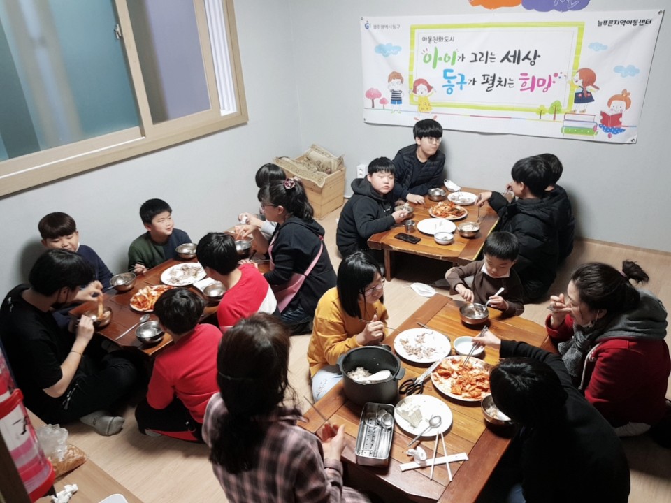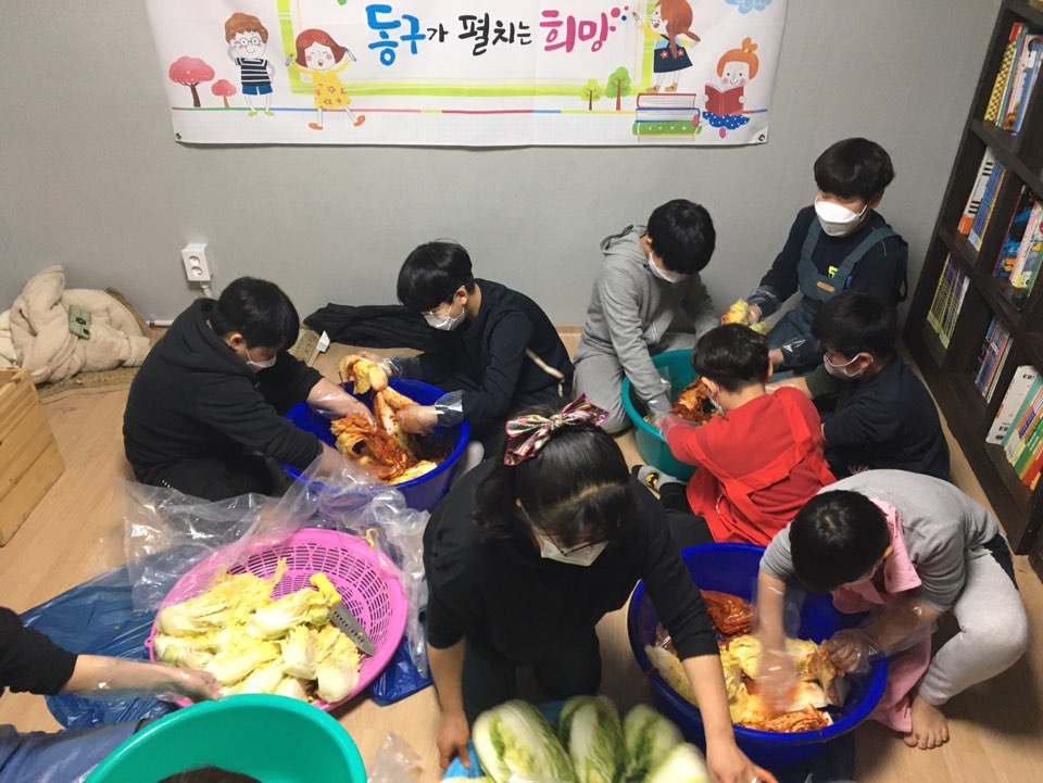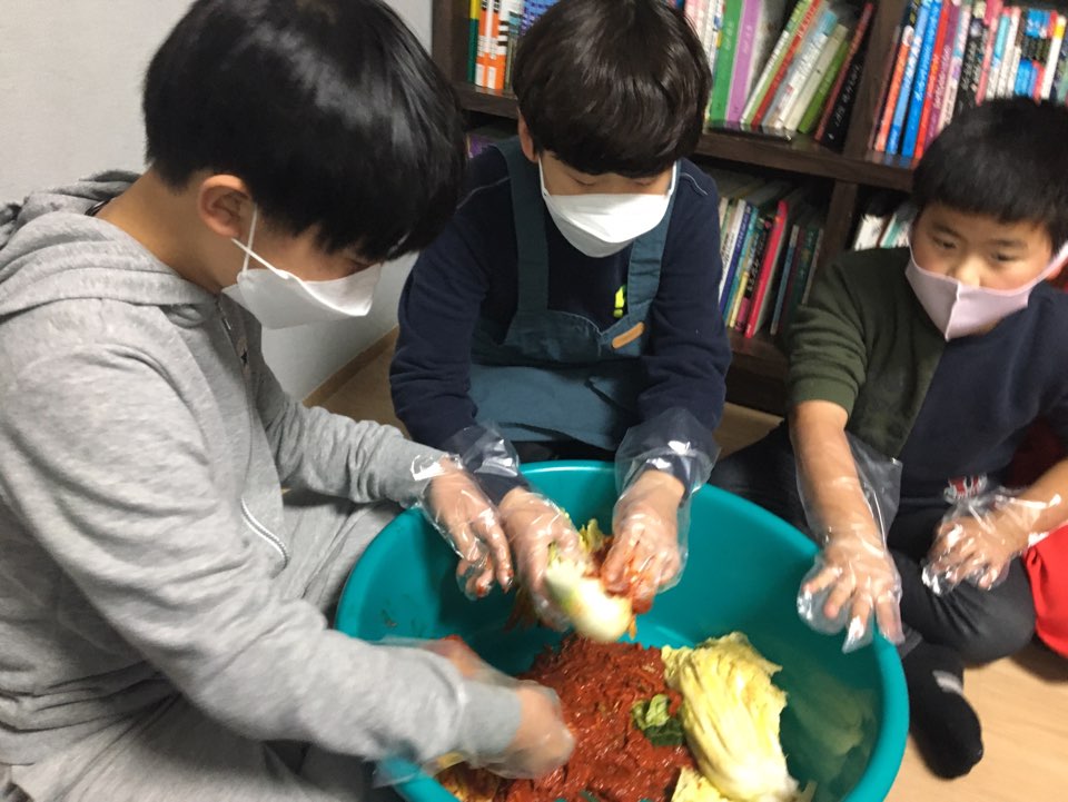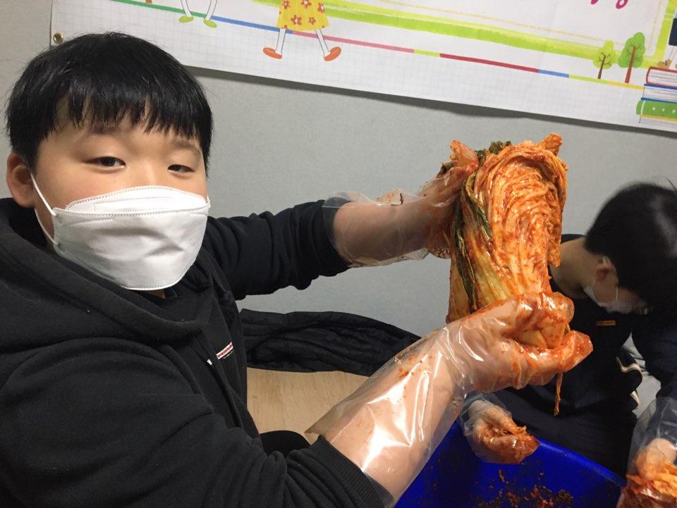아이들과 같이 김장체험을 하고 아이들이 직접만든 김치로 맛있는 음식을 먹고 각 가정으로 김치 나눔과 늘푸른지역아동센터 급식으로 맛있는 김치를 사용하고 있습니다.