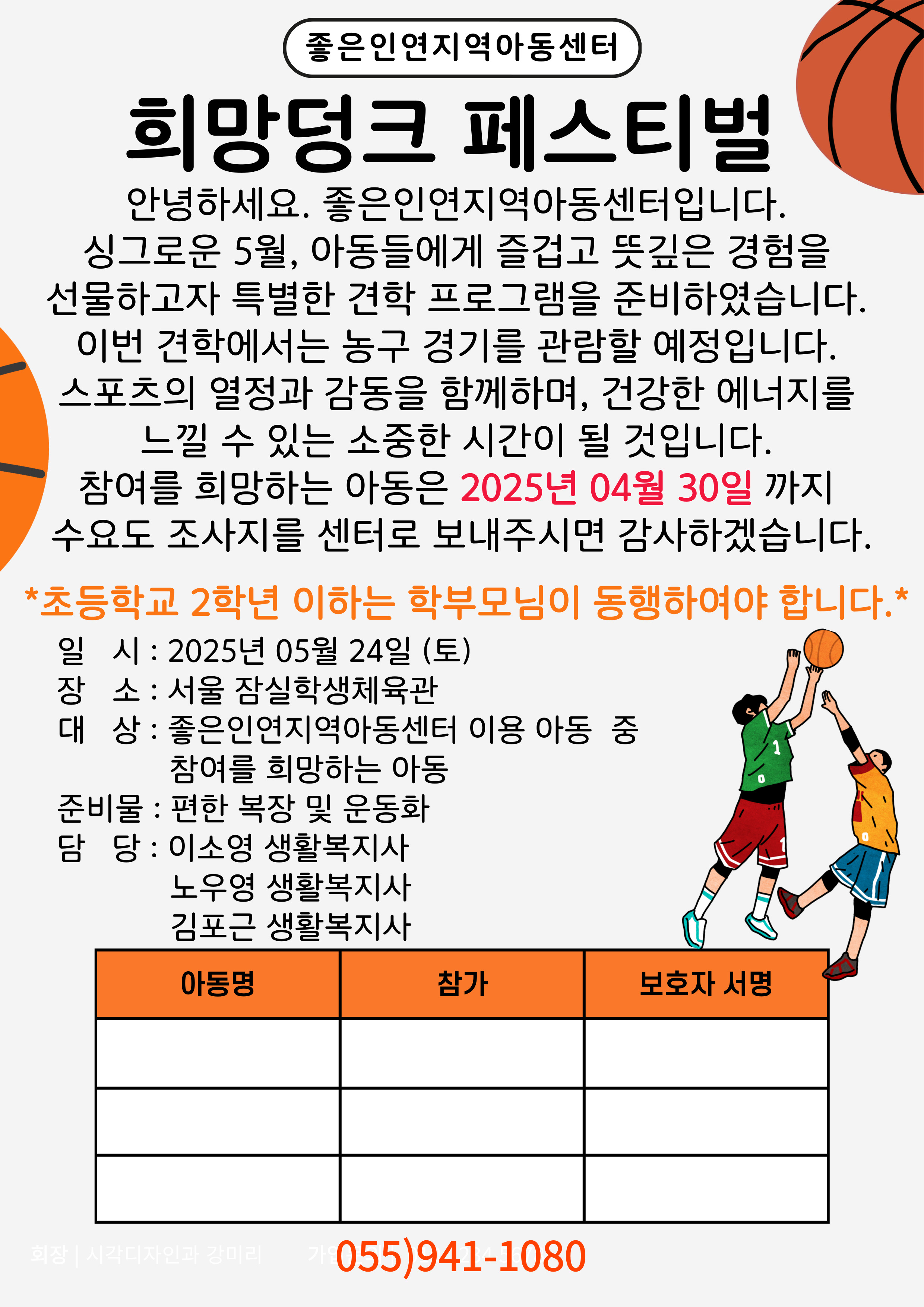 2025년 05월 24일 (토) '희망덩크 페스티벌' 프로그램을 진행하고자 합니다.