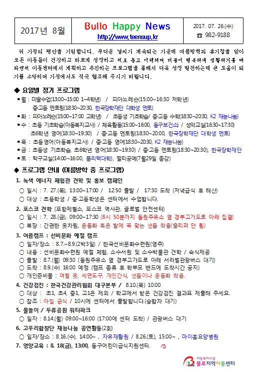 불로지역아동센터 | 대구광역시 동구 팔공로36길 13-3 불로동 [지도보기] Tel : 053-982-9188 Fax : 053-982-5500 E-mail : bullo1318@hanmail.net