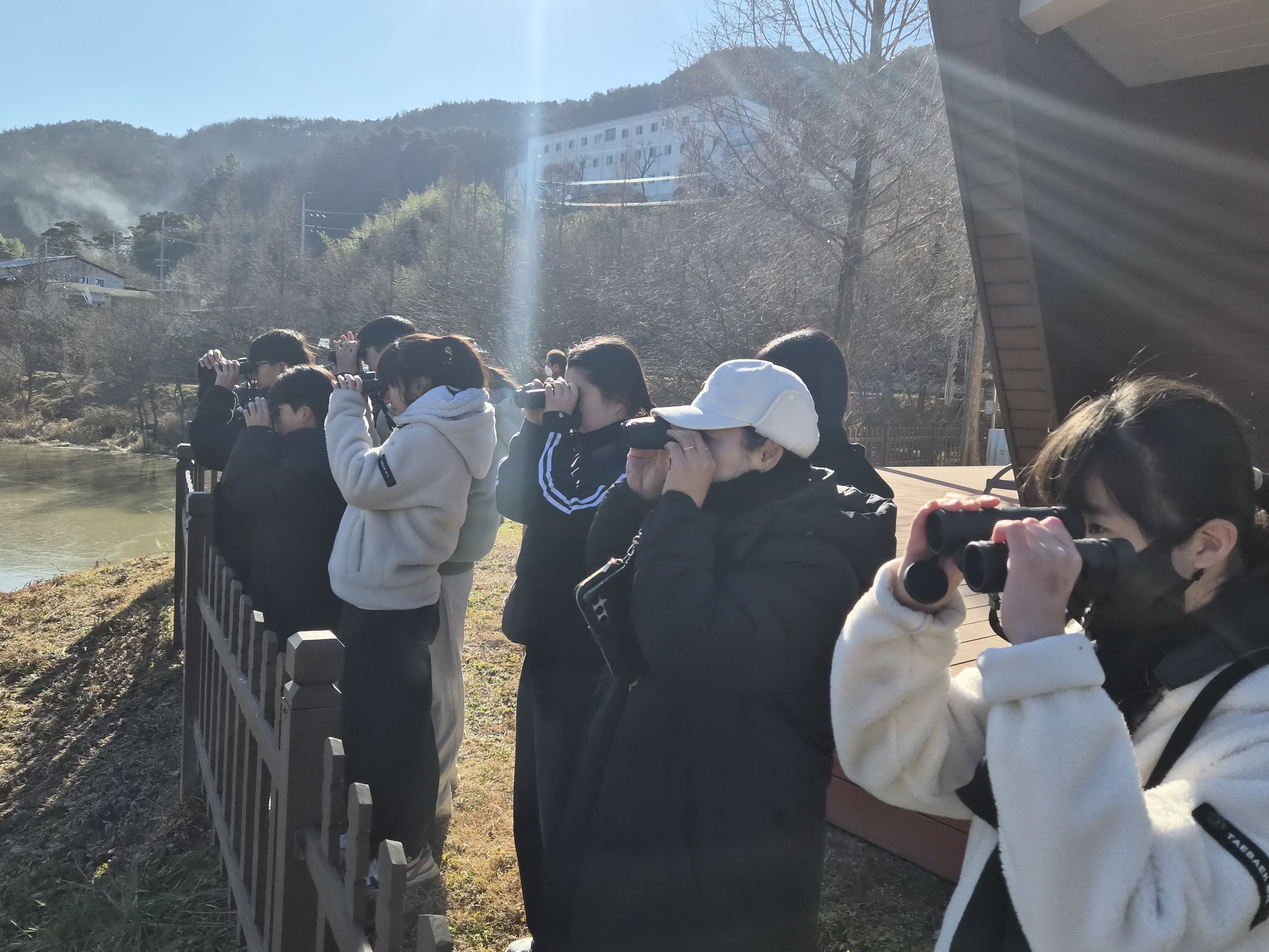 겨울 철새들이 주변에 많이 날아다니지만 망원경을 이용해 관찰하며 새들의 몸짓을 자세히 살펴볼 수 있는 기회는 없었는데
