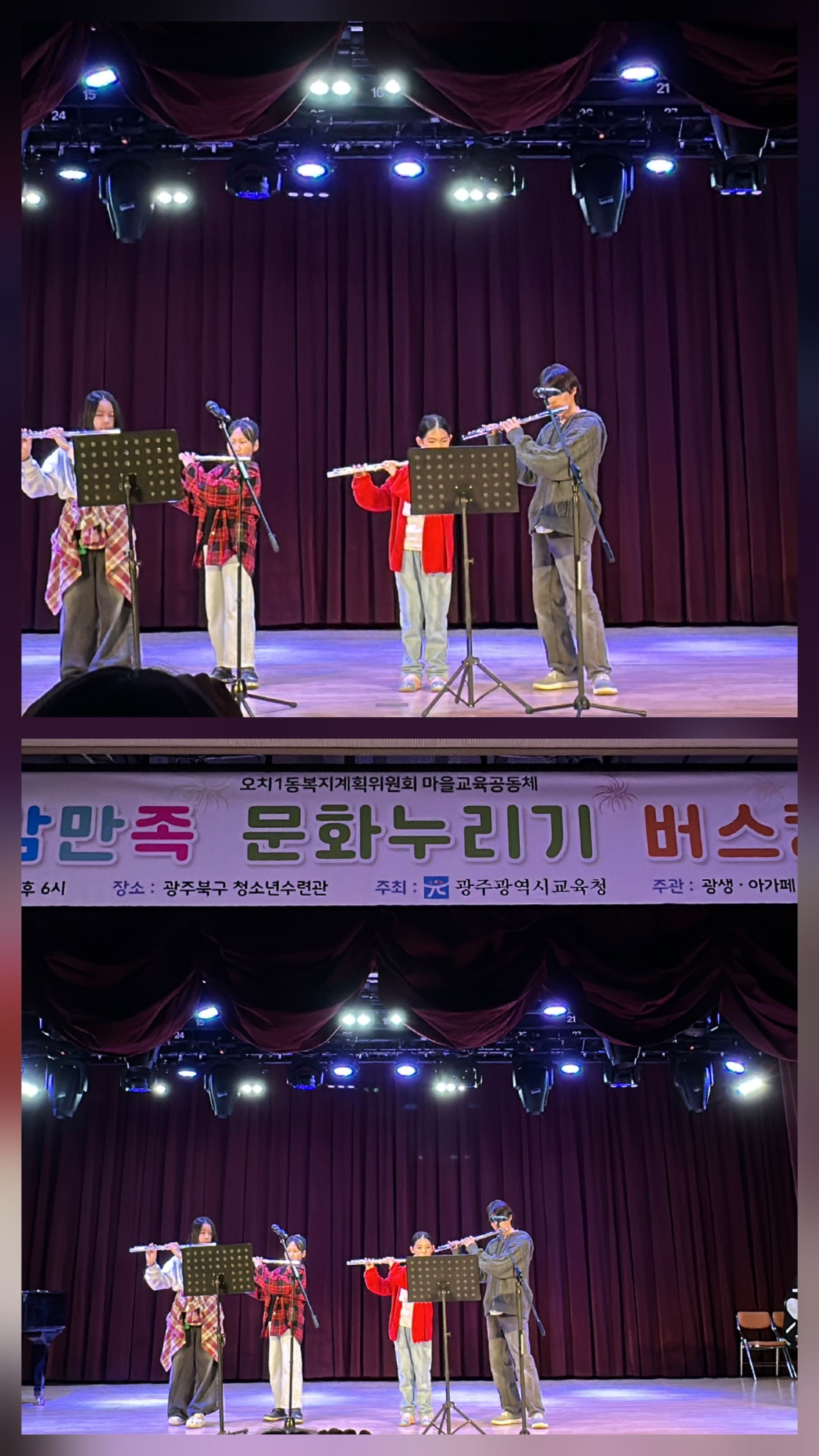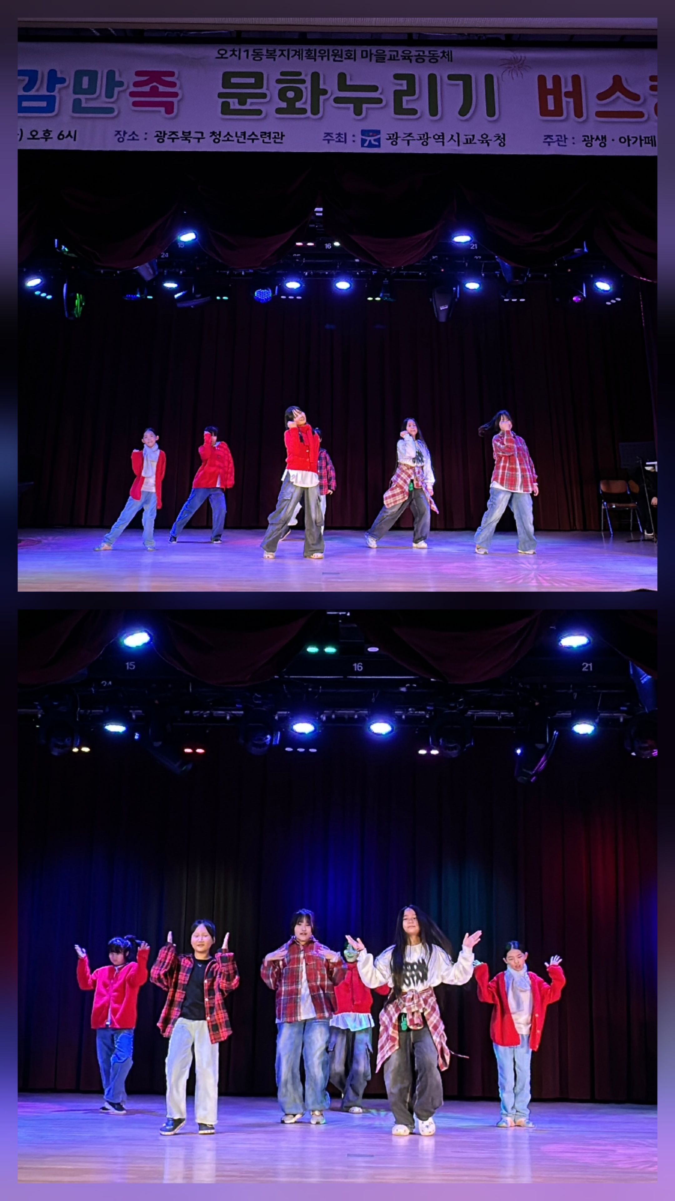 아이들은 악기 연주, 합창, 댄스, 컵타, 태권도'검도 시범, 음악줄럼기 등 다양한 무대를 준비해 자신 있게 보여주었고, 서로에게 아낌없는 응원과 박스를 보내며 즐겁게 어울렸습니다.