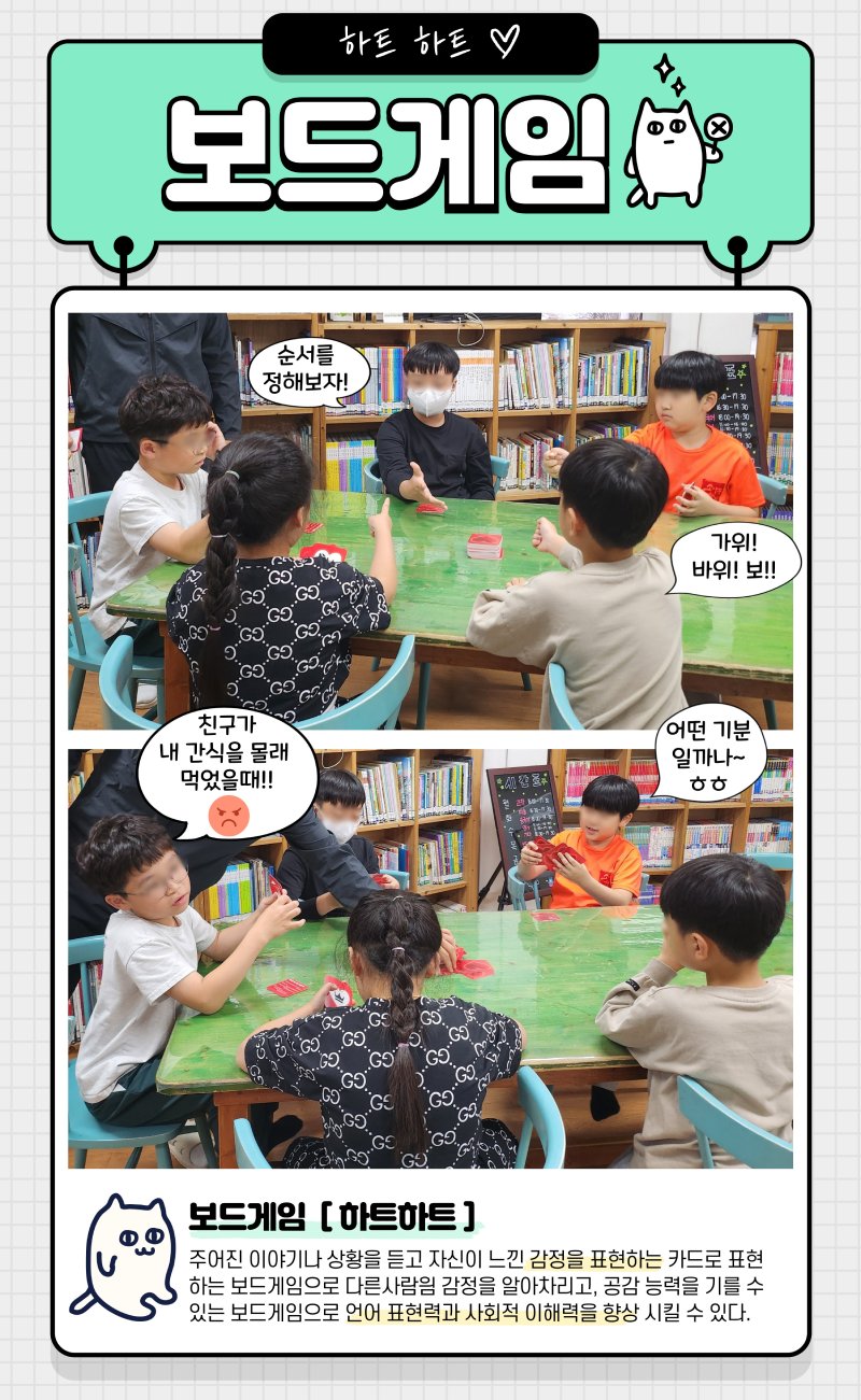 주어진 이야기나 상황을 듣고 감정을 표현하는 보드게임으로 공감능력을 기를 수 있었어요~