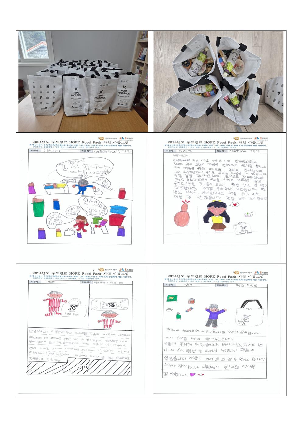 24년 푸드뱅크 HOPE FOOD PACK 사업을 신청하면서 우리 아이들과 부모님들께 많은 도움이 되었으면 좋겠다는 생각을 했습니다. 5회에 걸쳐 후원해 주신 물픔을 전달할 때마다 아이들과 부모님들의 매우 긍정적인 반응을 볼 수 있어 이 사업을 신청한 것에 보람을 느꼈습니다. HOPE FOOD PACK 사업에 참여한 것에 매우 만족하며 후원해 주셔서 너무 감사합니다. 내년에도 물품이 좀 더 다양해지고 간편식이지만 영양적으로도 손색이 없는 제품들로 푸드팩이 구성되면 훨씬 더 좋을 것 같습니다. 센터 이용 아동 대부분이 맞벌이 가정으로 바쁜 경제활동을 하며 자녀들의 먹거리를 챙기는 것에 어려움을 표현하는 부모님들이 많았으며 차상위, 수급, 한부모 가정 등 경제적인 어려움이 있는 아동들도 많아 이번 후원에 대해 만족도가 매우 높았습니다. 무엇보다 아동들이 좋아하고 쉽게 챙겨 먹을 수 있는 간편식이 많아 부모님이 안계셔도 아동들 스스로 먹거리를 챙겨 먹을 수 있는 것에 대해 호응이 좋았습니다.