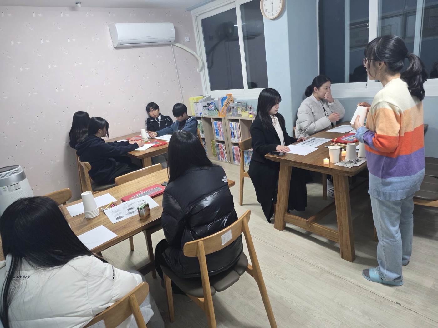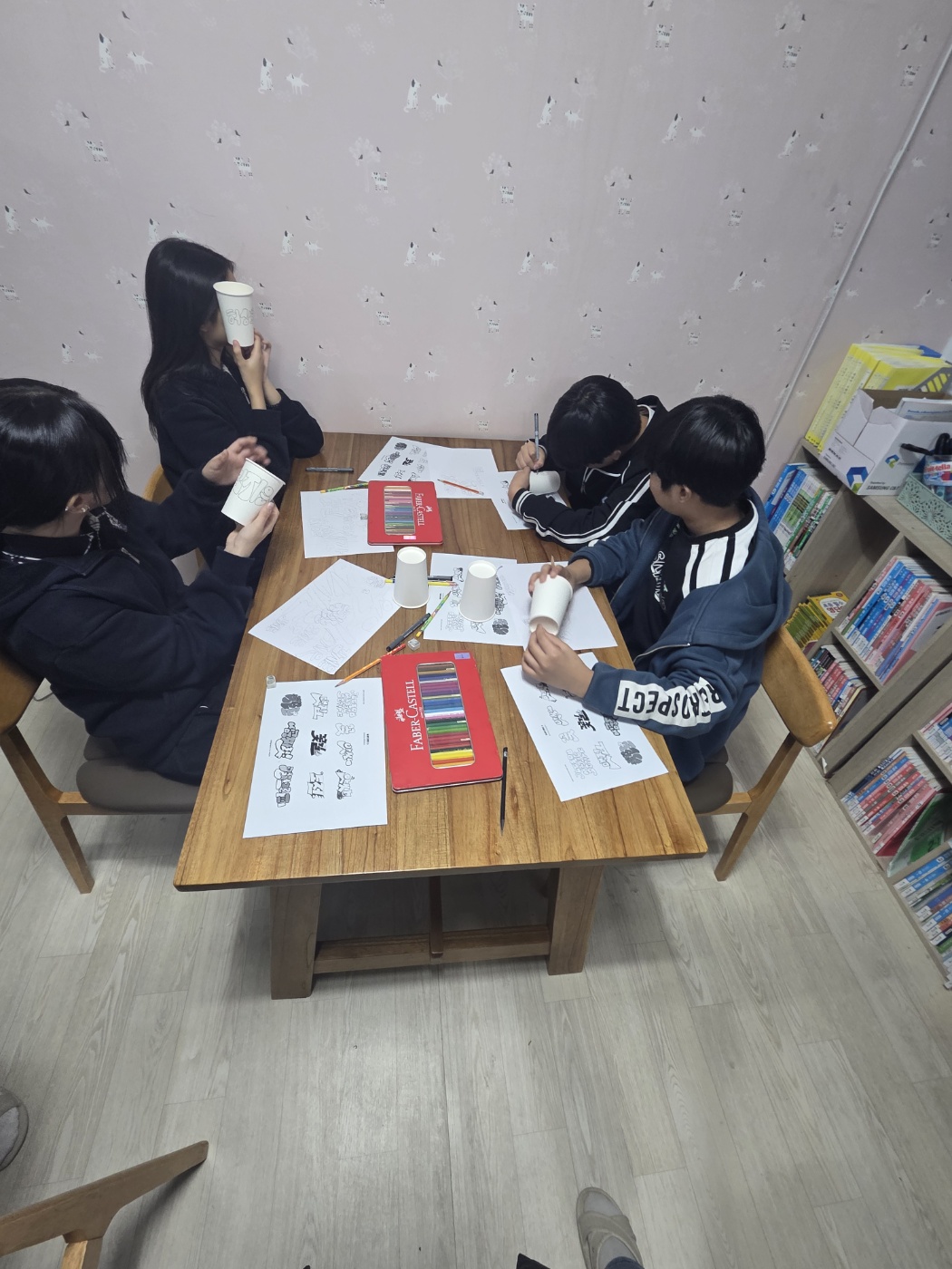 집중하여 수업에 참여하는 중학생 친구들 입니다.