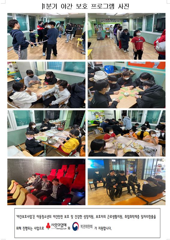 지역아동센터 꿈이있는교실 23년 야간보호 활동 1분기 사진입니다.