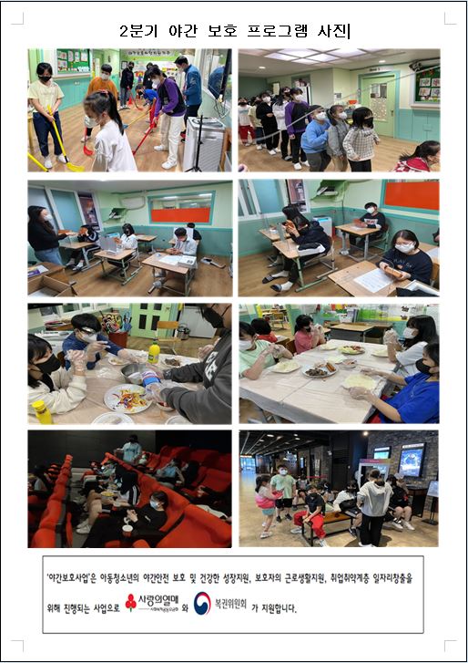 지역아동센터 꿈이있는교실 2022년 2분기 야간보호프로그램 사진