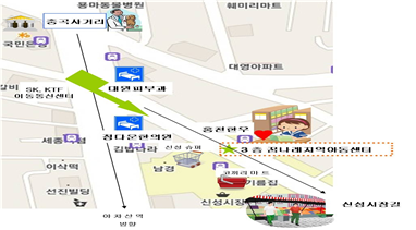 - 마을버스 3번 새마을금고 하차 도보 / 마을버스4번 아차산역 2번출구앞 승차 종로약국 하차