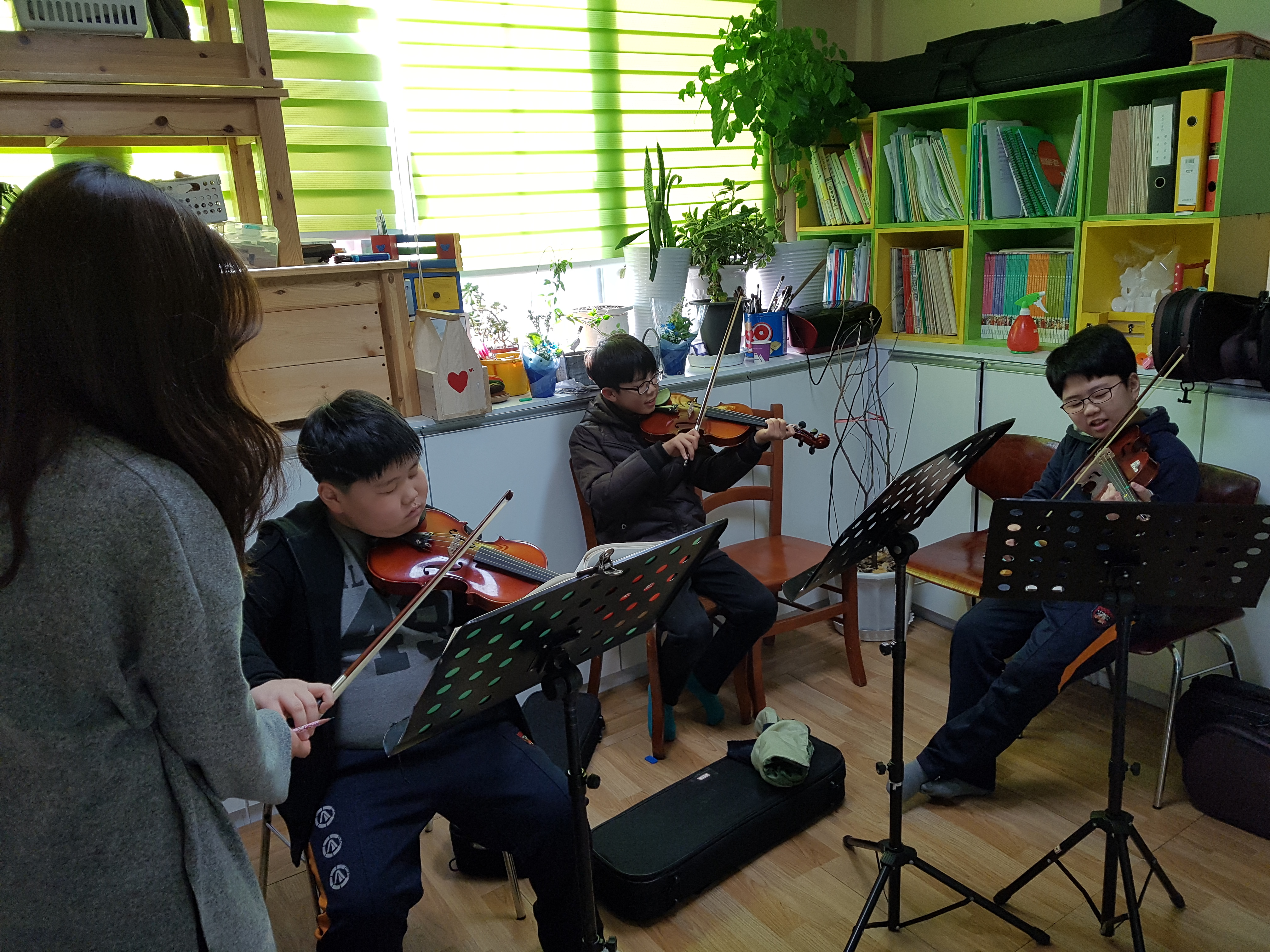 바이올린, 플룻, 리코더, 피페, 피아노, 합창, 사회성발달, 등 다양한 악기연주를 통해 감성함량과 안정된 정서를 갖을 수 있도록 돕는 프로그램