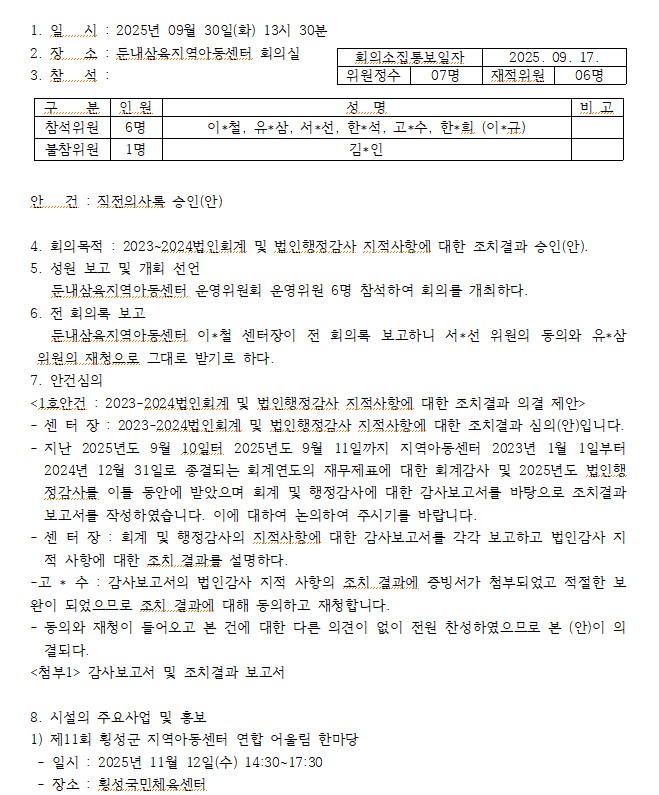 2025년도 3분기 운영위원회 회의록을 공지합니다.