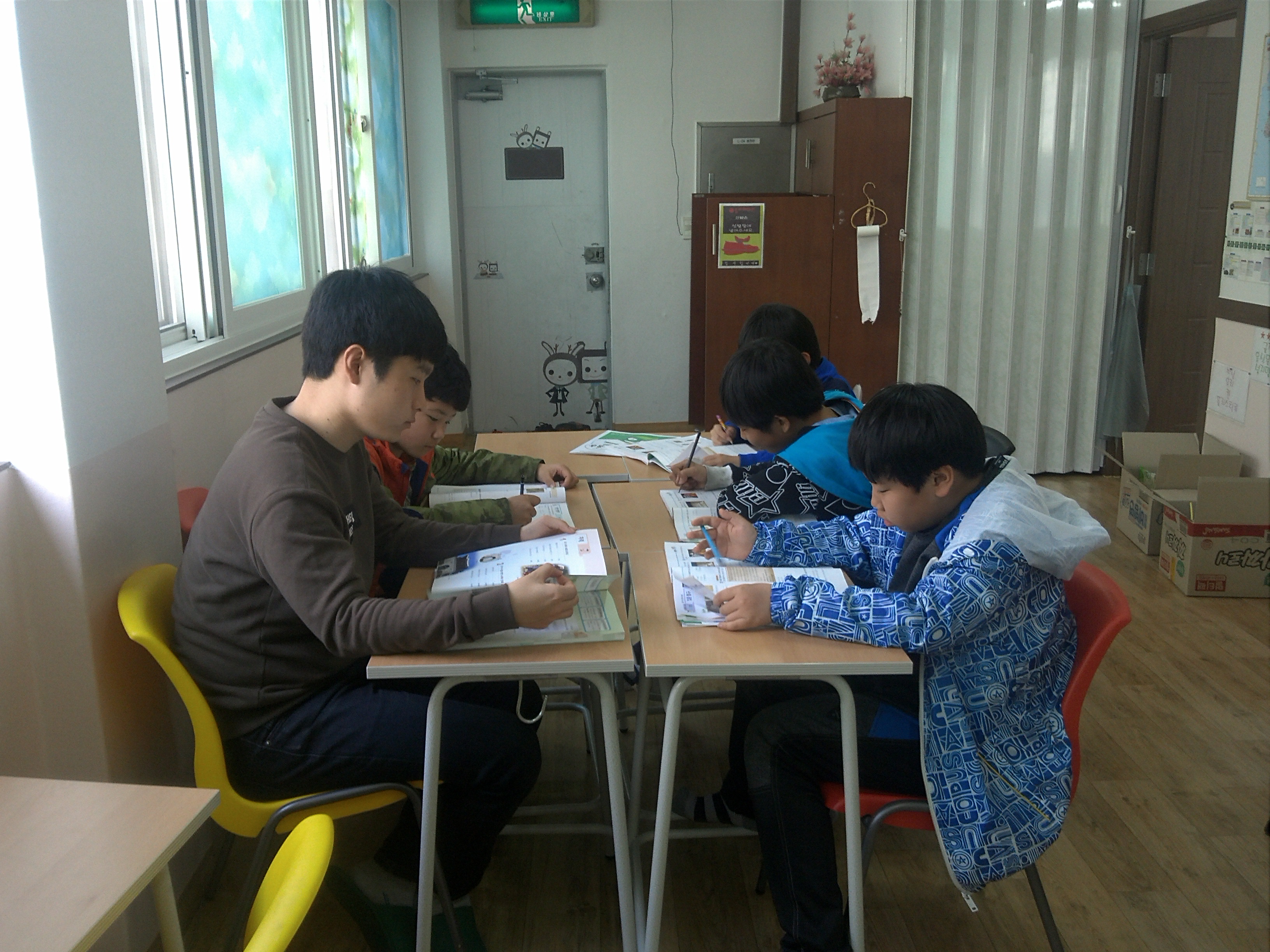 노래는 교재에 있는 노래부터 시작해 쉬운 노래부터 시작하며 방학 중이나 시험이 없는 달은 pop song을 반복해서 불러서 익히며 단어, 짧은 문장, 쉬운 문장을 반복하여 읽히고 많은 문장을 읽게 하여 영어를 입에 익숙하게 하여, 영어에 자신감을 가지고 좀 더 쉽게 접근 할 수 있게 하고 있습니다.