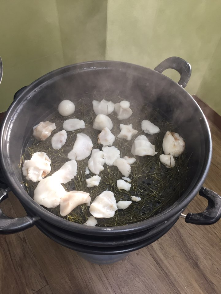 집에서 만드는 것과 같이 솔잎을 뜯어 솔잎 위에 송편을 올려 쩌보며 나름의 전통 방식대로 송편을 빚어보고, 쩌 보았습니다.