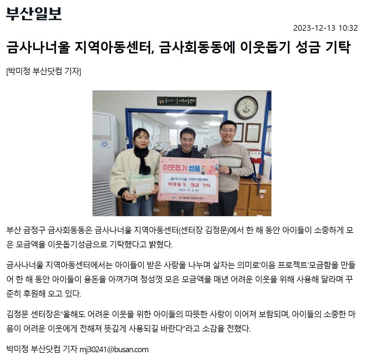 2023년 금사나너울지역아동센터 금사회동동에 이웃돕기 성금 기탁