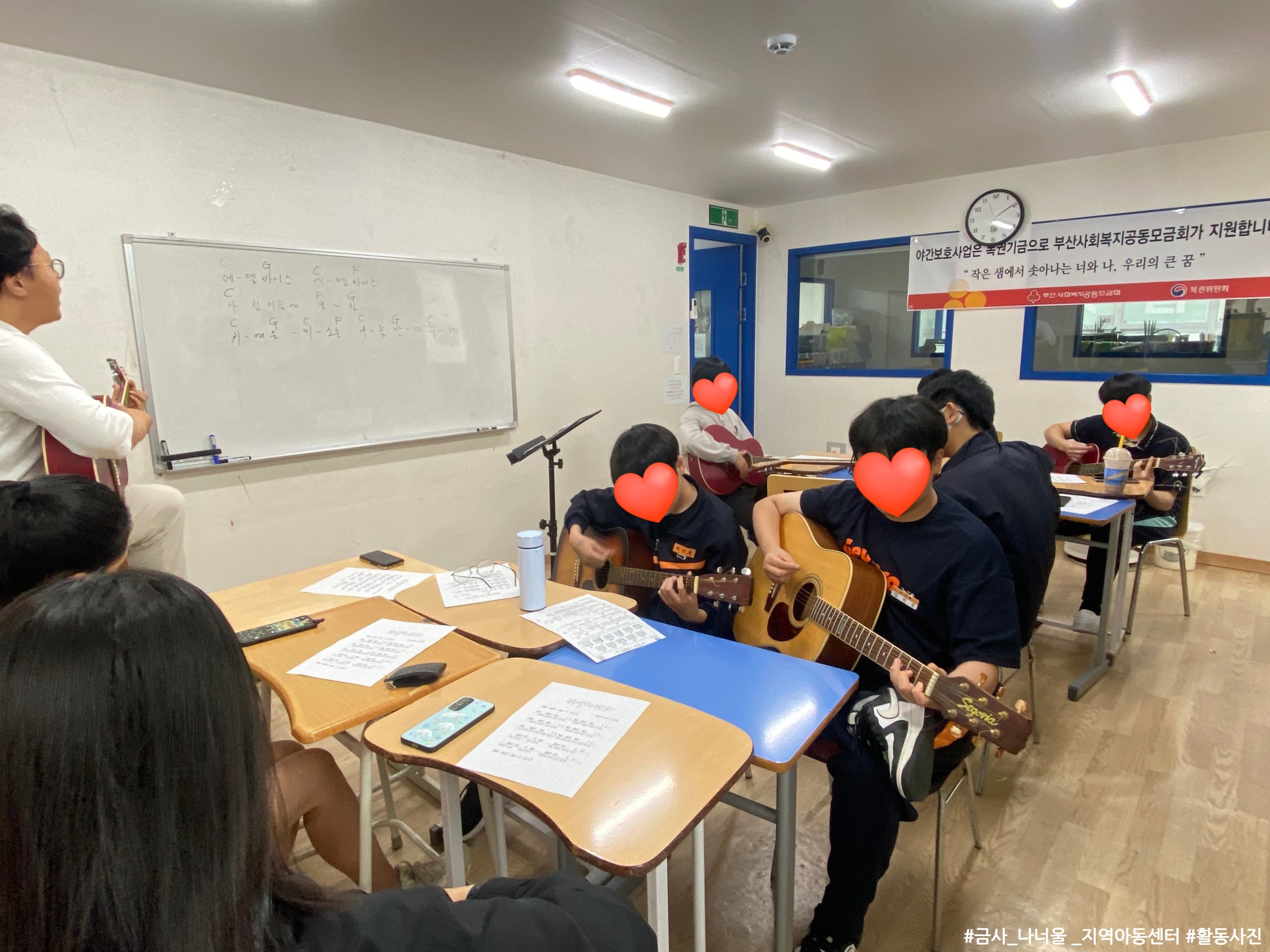 기타 수업을 통해 아이들이 음악 선율의 아름다움을 느끼고 마음을 쉬어갈 수 있는 시간을 가지는 시간입니다.
