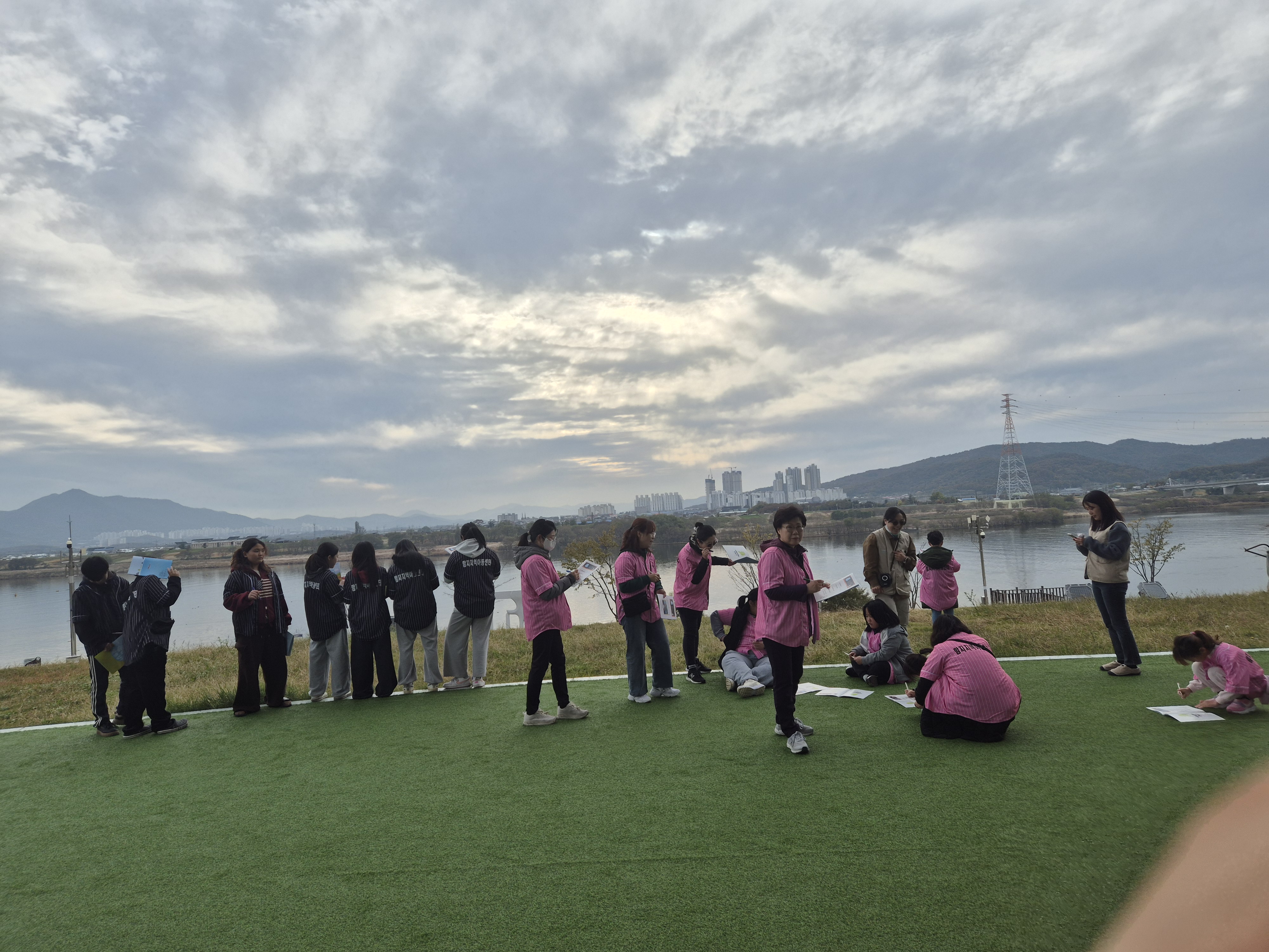 금호강과 낙동강이 만나는 지역에서 만날 수 있는 동물들을 배우고, 강물이 어떻게 흘러 오는지 몸으로 배우고 강물 오염원에 대해 얘기를 나누며, 사라지는 서식지로 인해 멸종위기 동물들이 잘 살 수 있도록 환경을 깨끗이 하기 위해 우리가 할 수 있는 활동을 적고 실천하는 방법을 토론하고 게임으로 기억하도록 하였다.