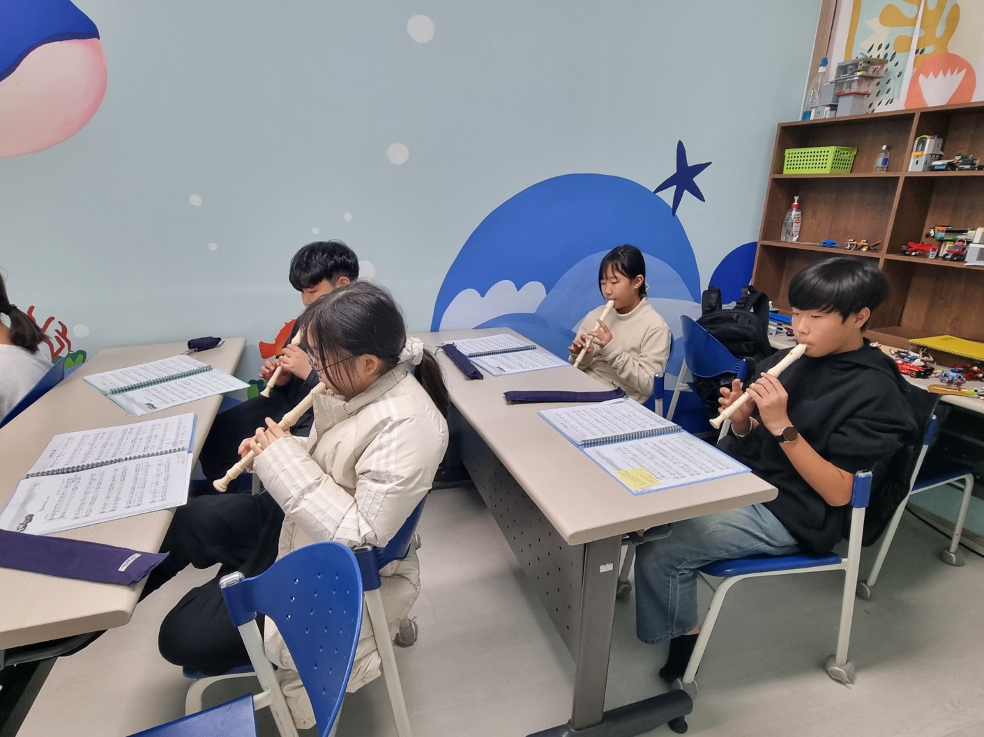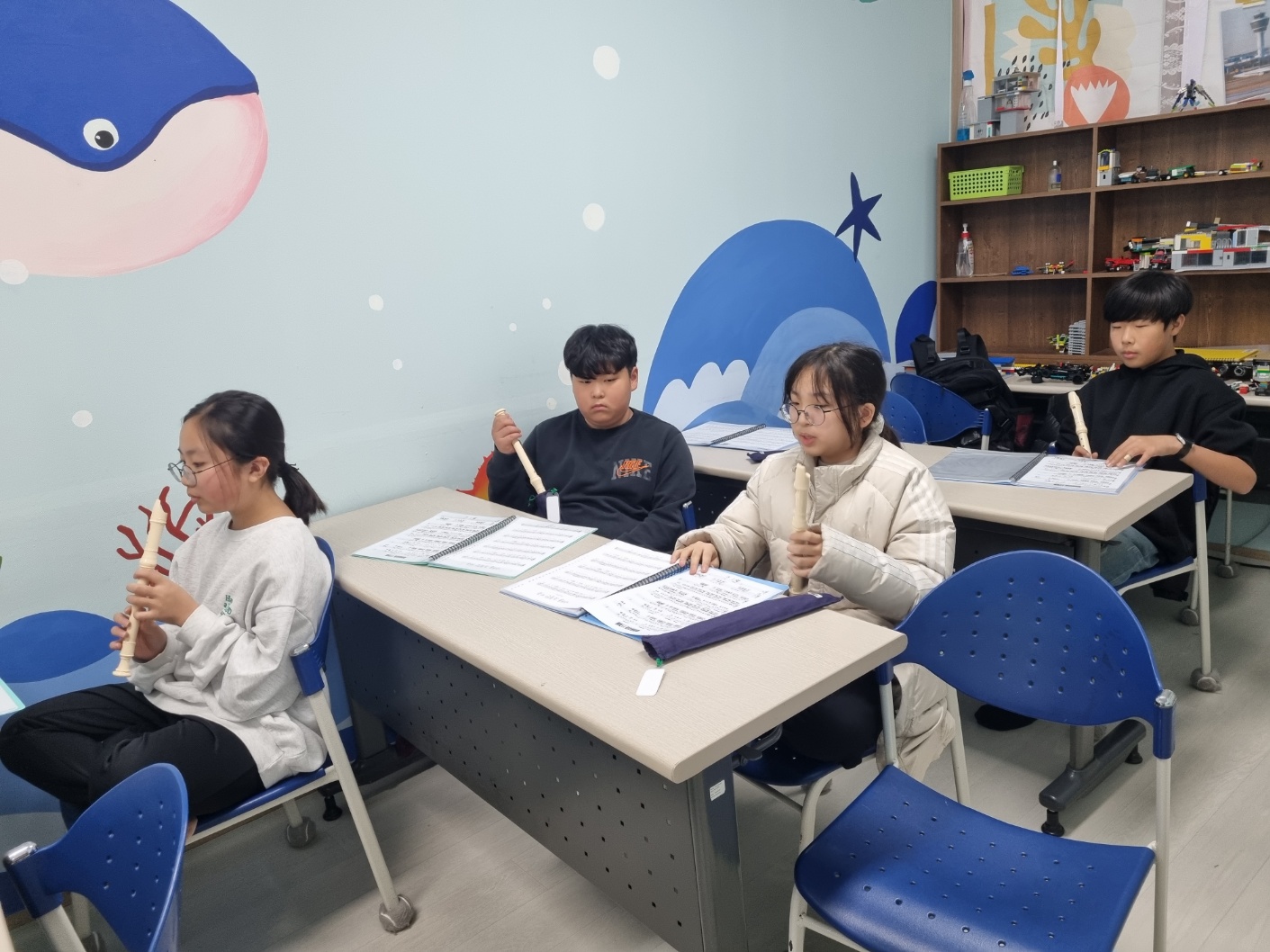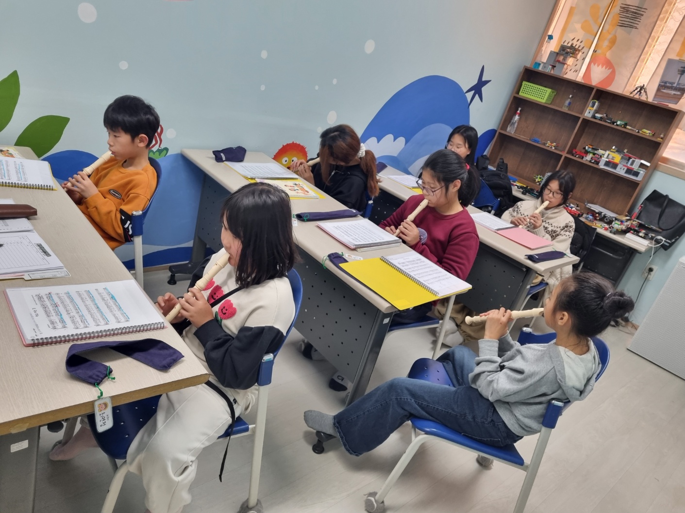오늘은 리코더 수업이 있는 날입니다.