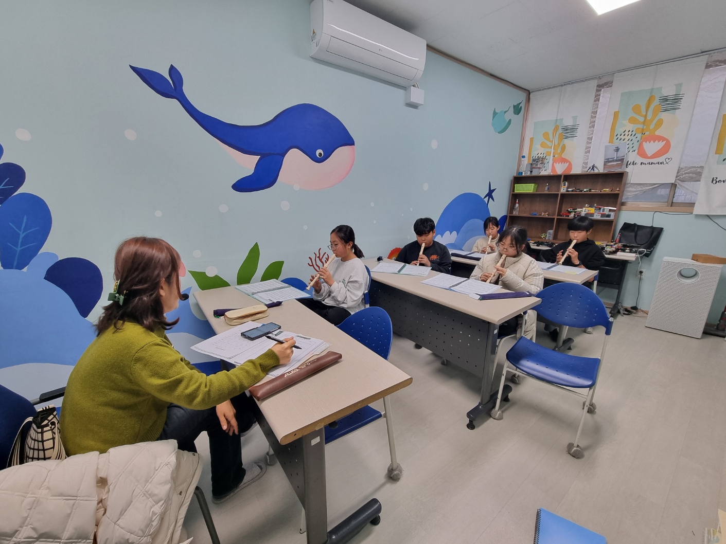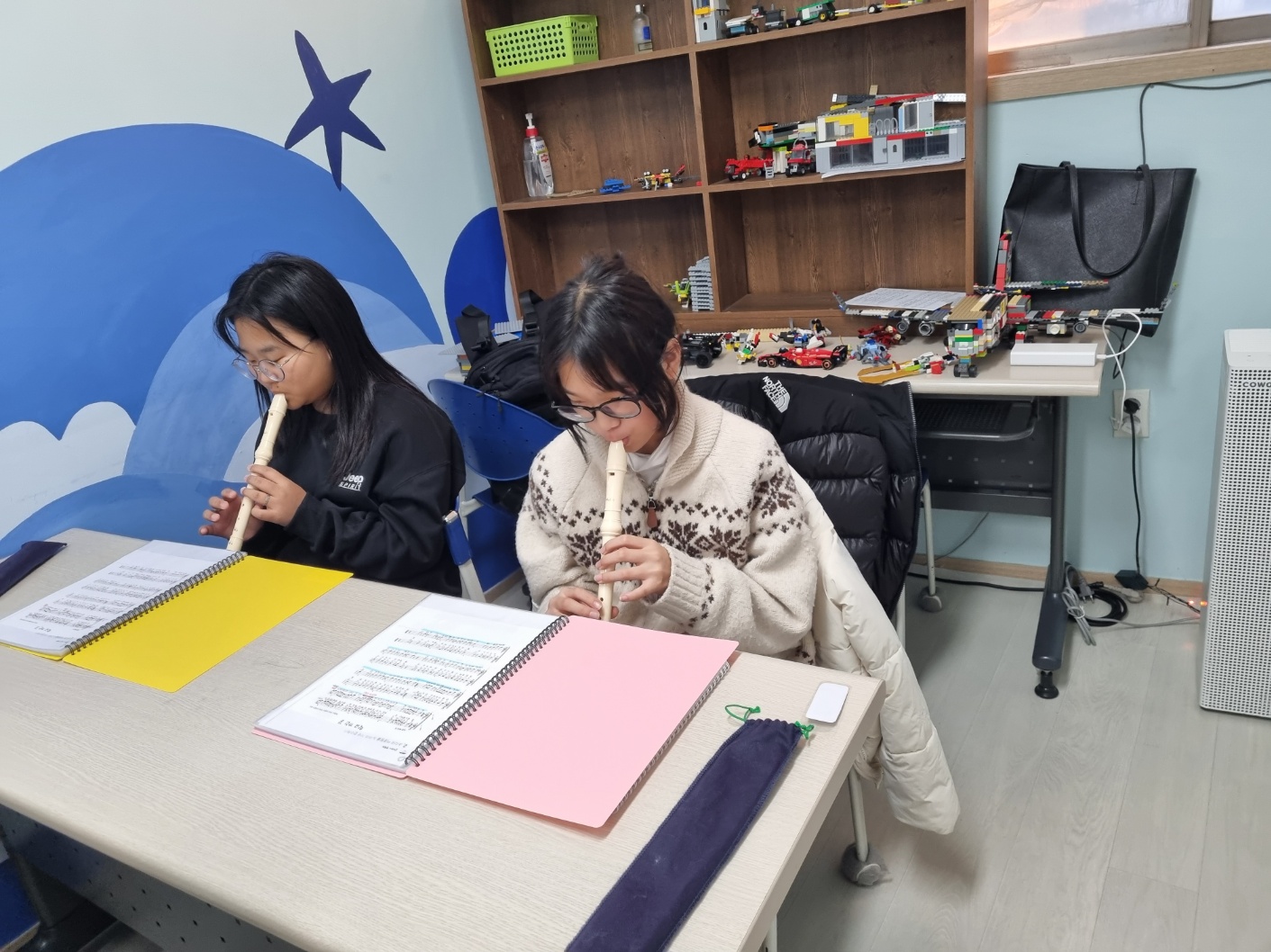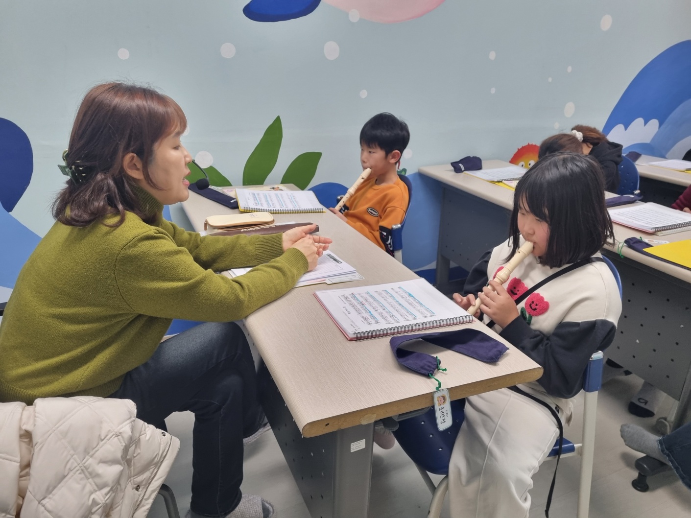 오늘은 리코더 수업이 있는 날입니다.