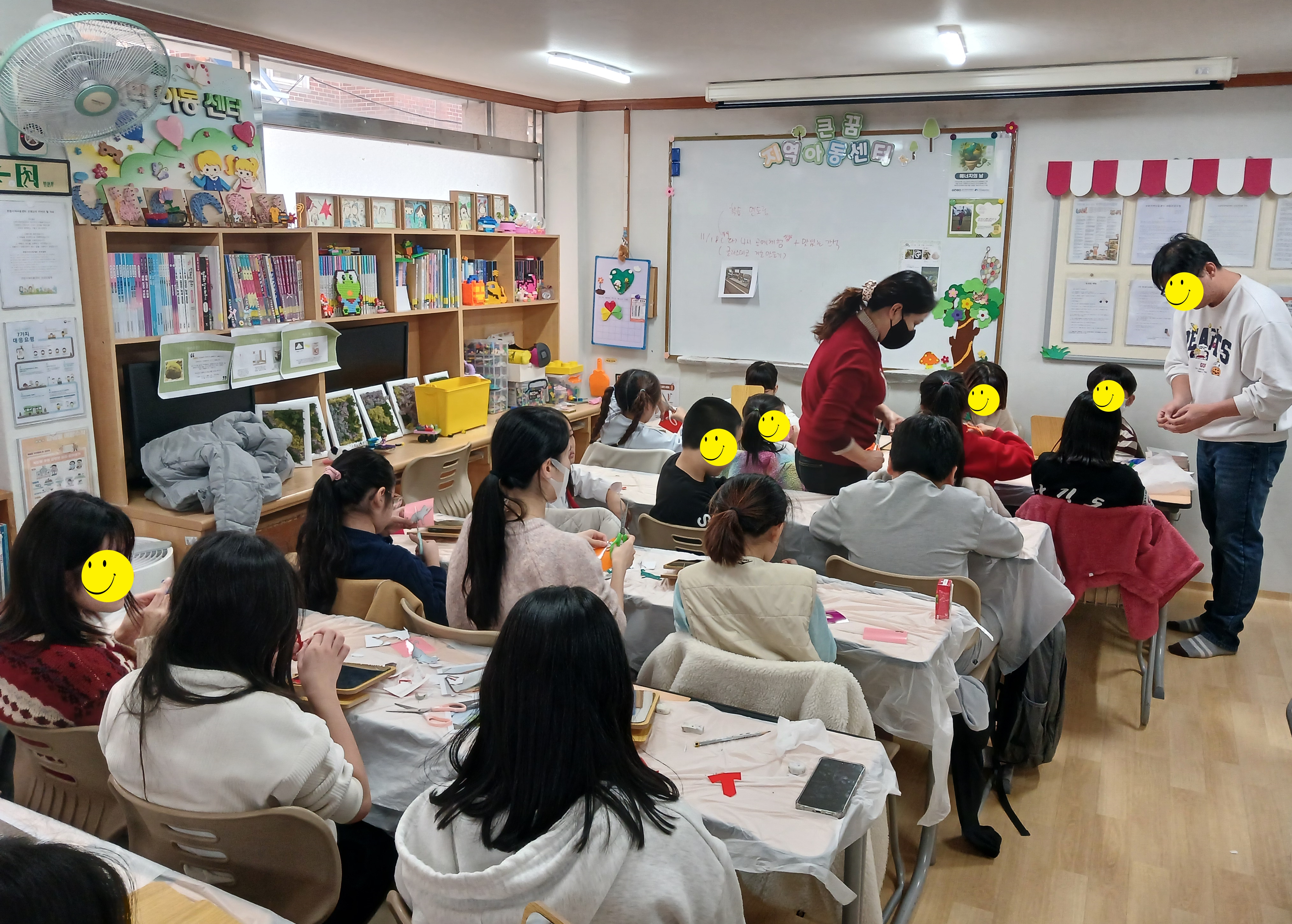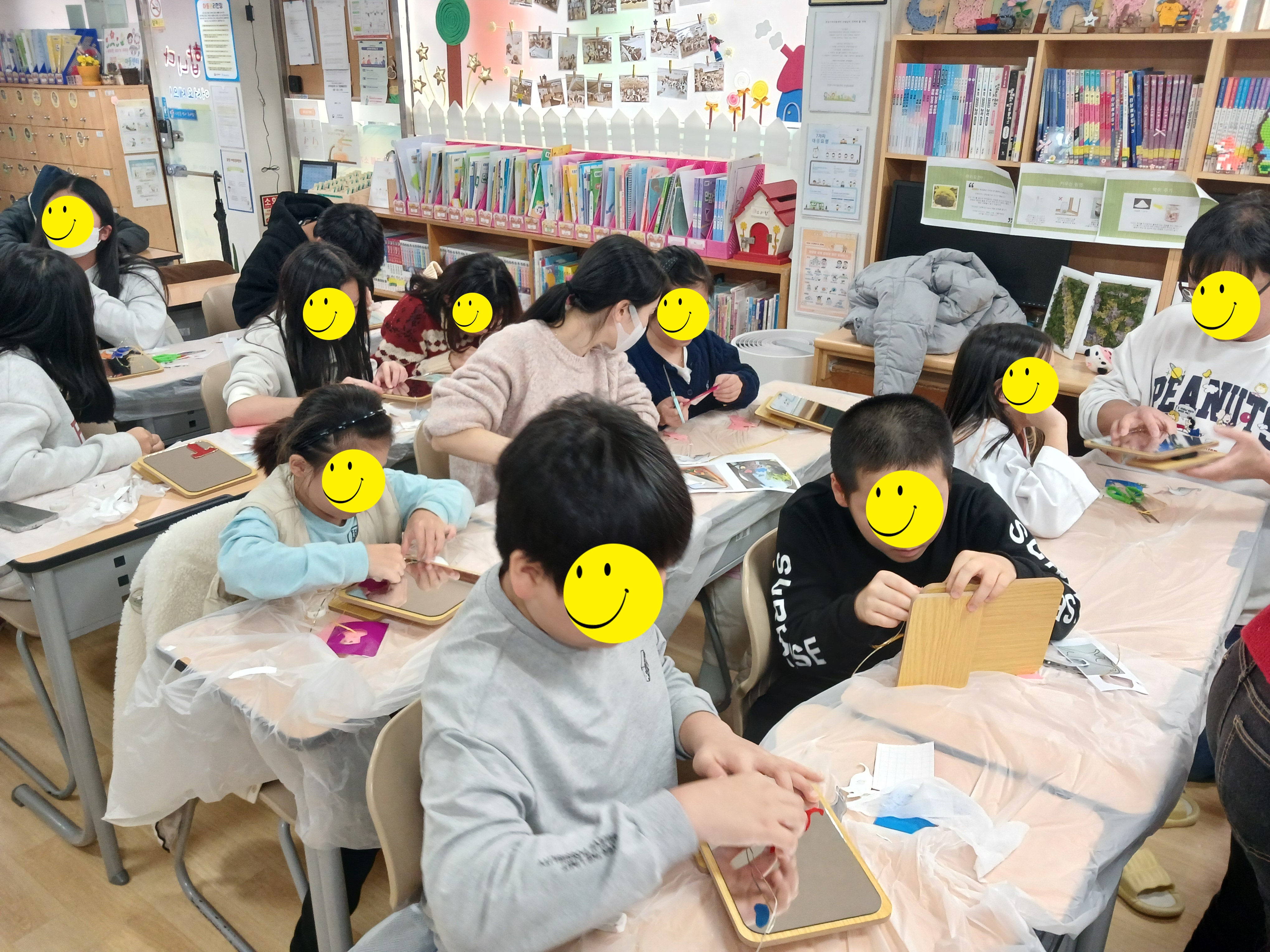 아동들이 글라스아트 기법으로