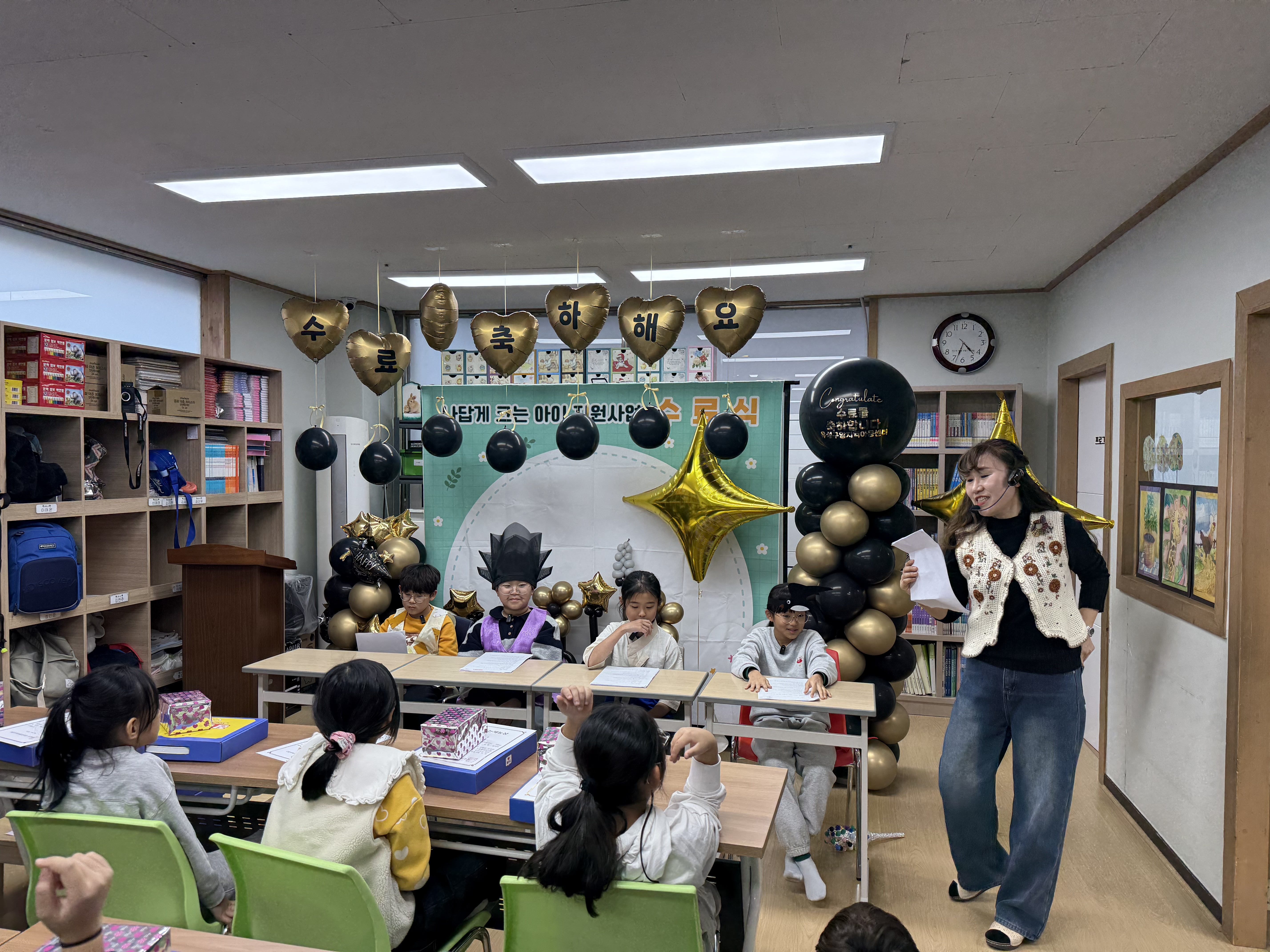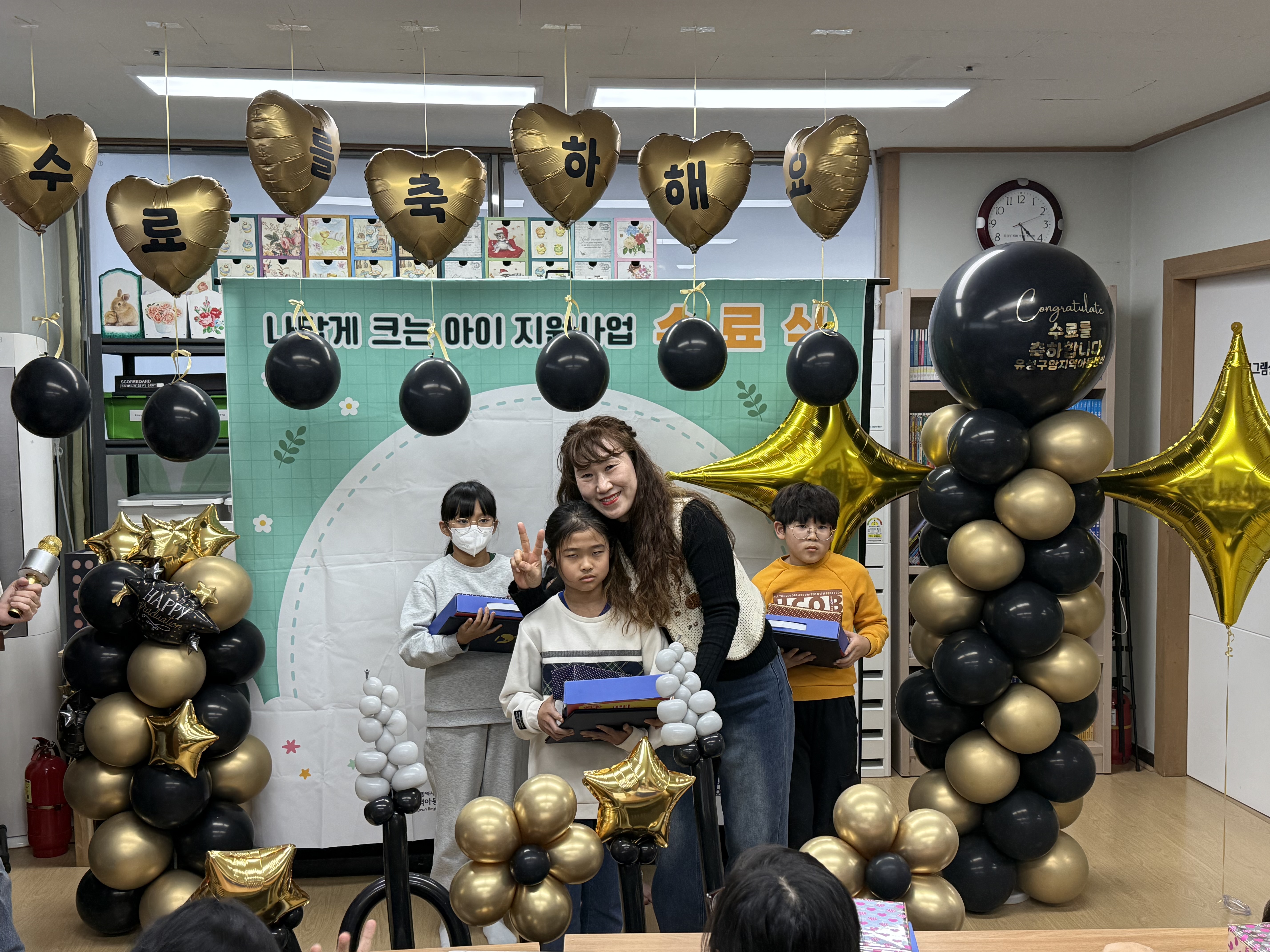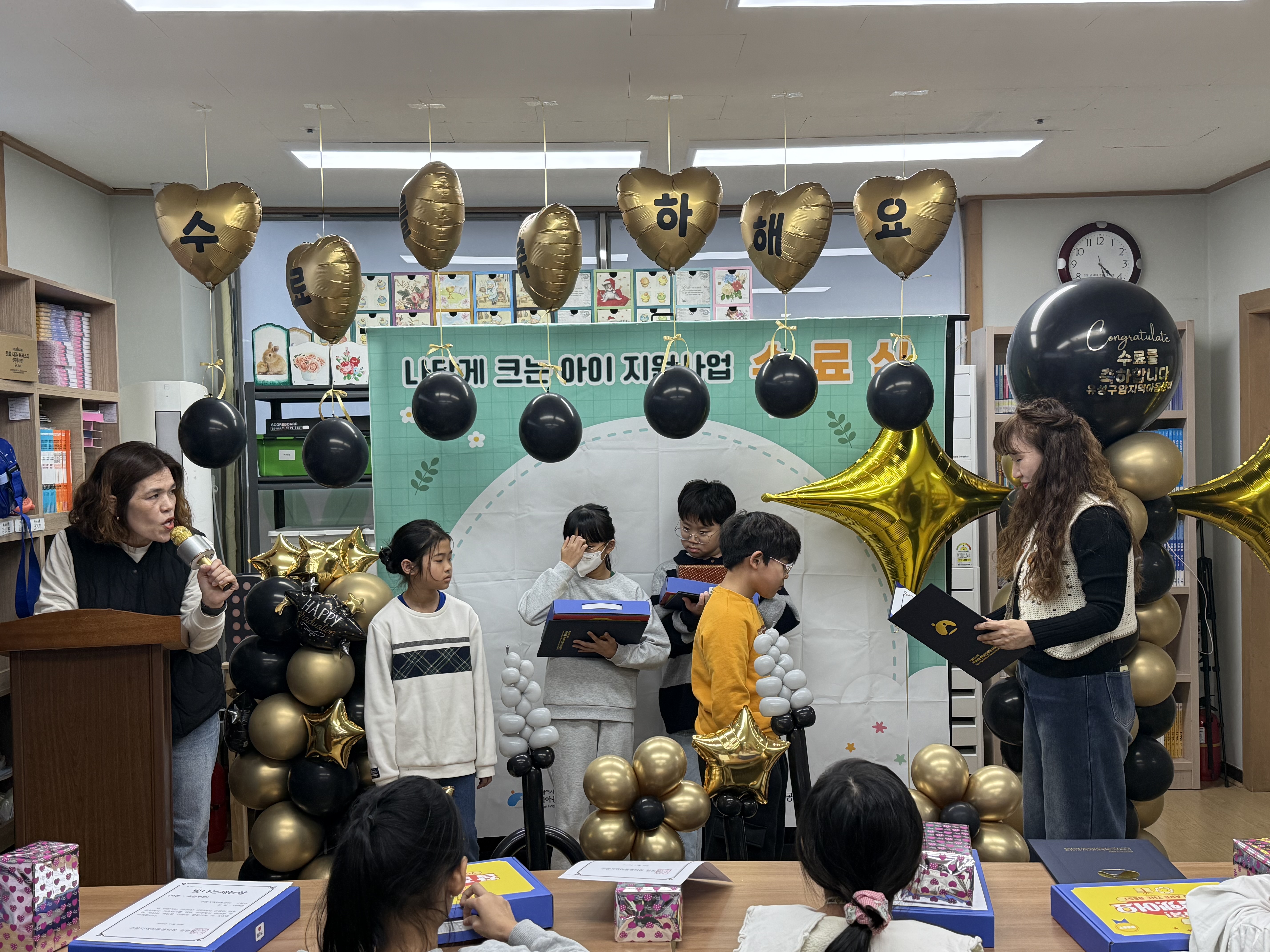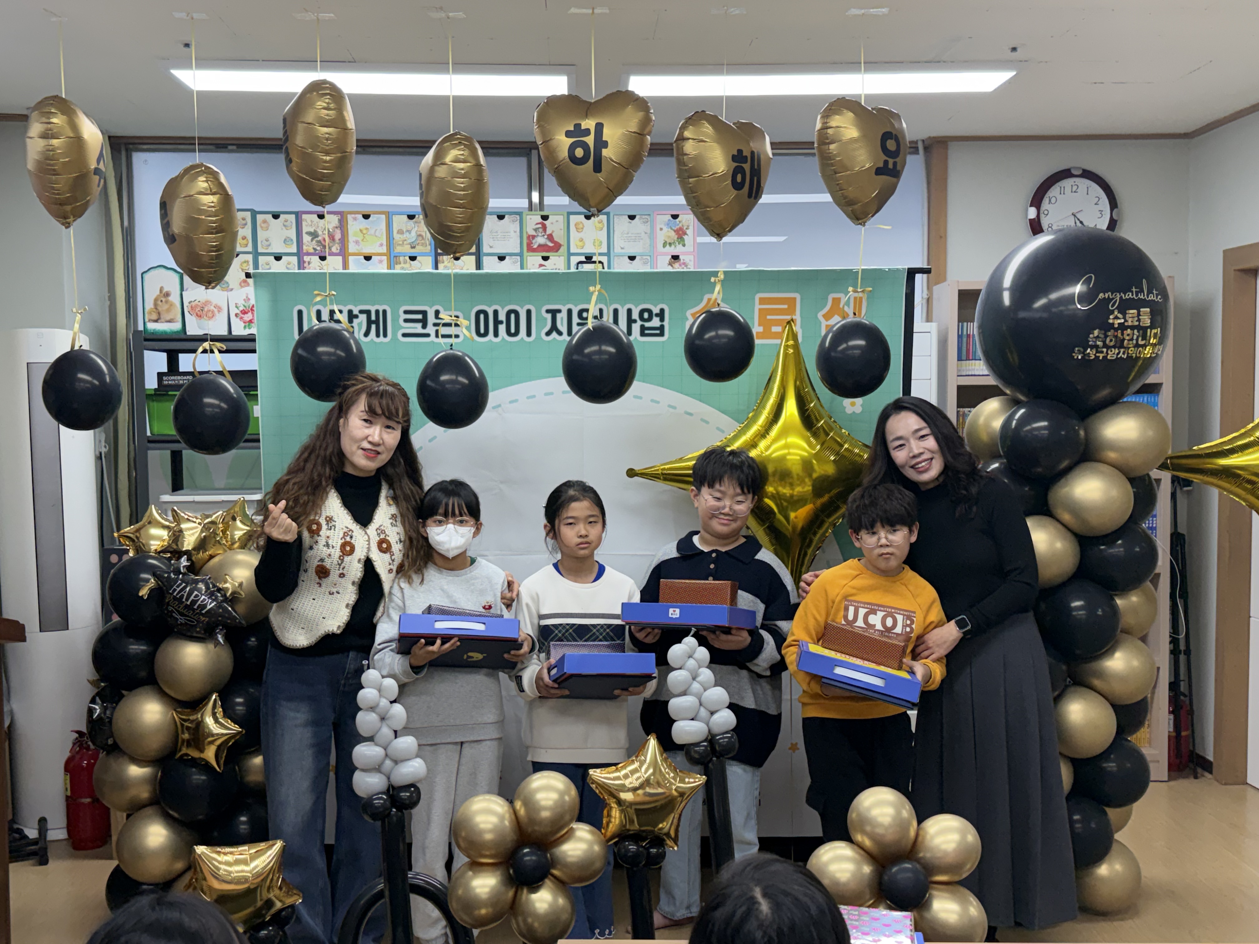 - 지역아동센터 대전지원단에서 진행하는 나답게크는아이 지원 사업 수료식을 센터에서 진행을 하였으며, 참여 아동 4명의 아동이 수료를 하였습니다.