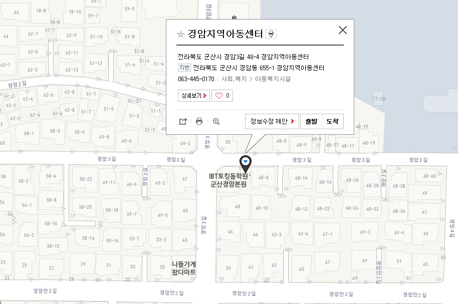 2018년 10월 경암소식경암지역아동센터 | 전라북도 군산시 경암3길 48-4 경암지역아동센터 (2층) [지도보기] Tel : 063-445-1717 Fax : 0303-0944-1717 E-mail : keed-sung@hanmail.net