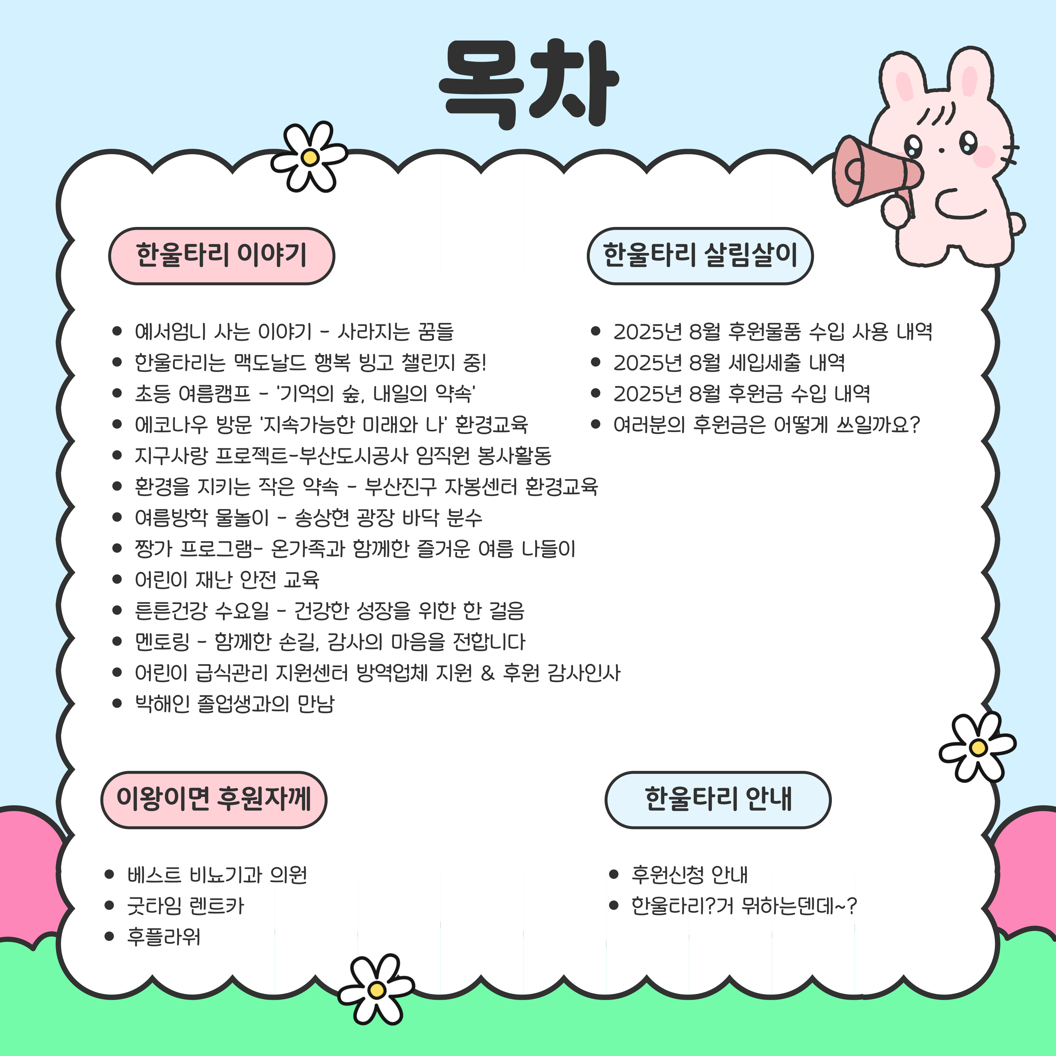 사랑스러운 아이들의 센터 활동 소식과 후원 내역 등