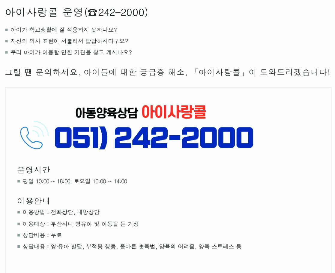 아이사랑콜 운영안내