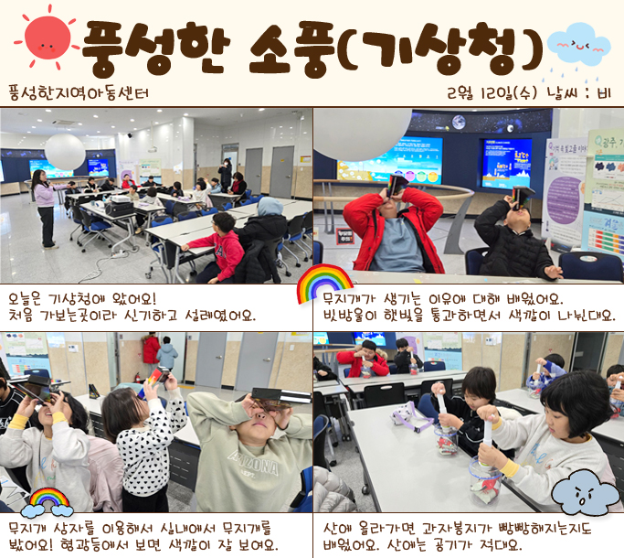 특히 기상청에서 무지개가 생기는 이유와 기압에 따라 과자 봉지가 부푸는 실험을 볼 때는