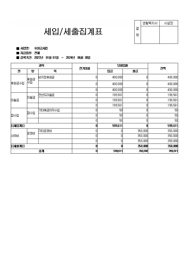 2023년 후원금 세입세출 내역서