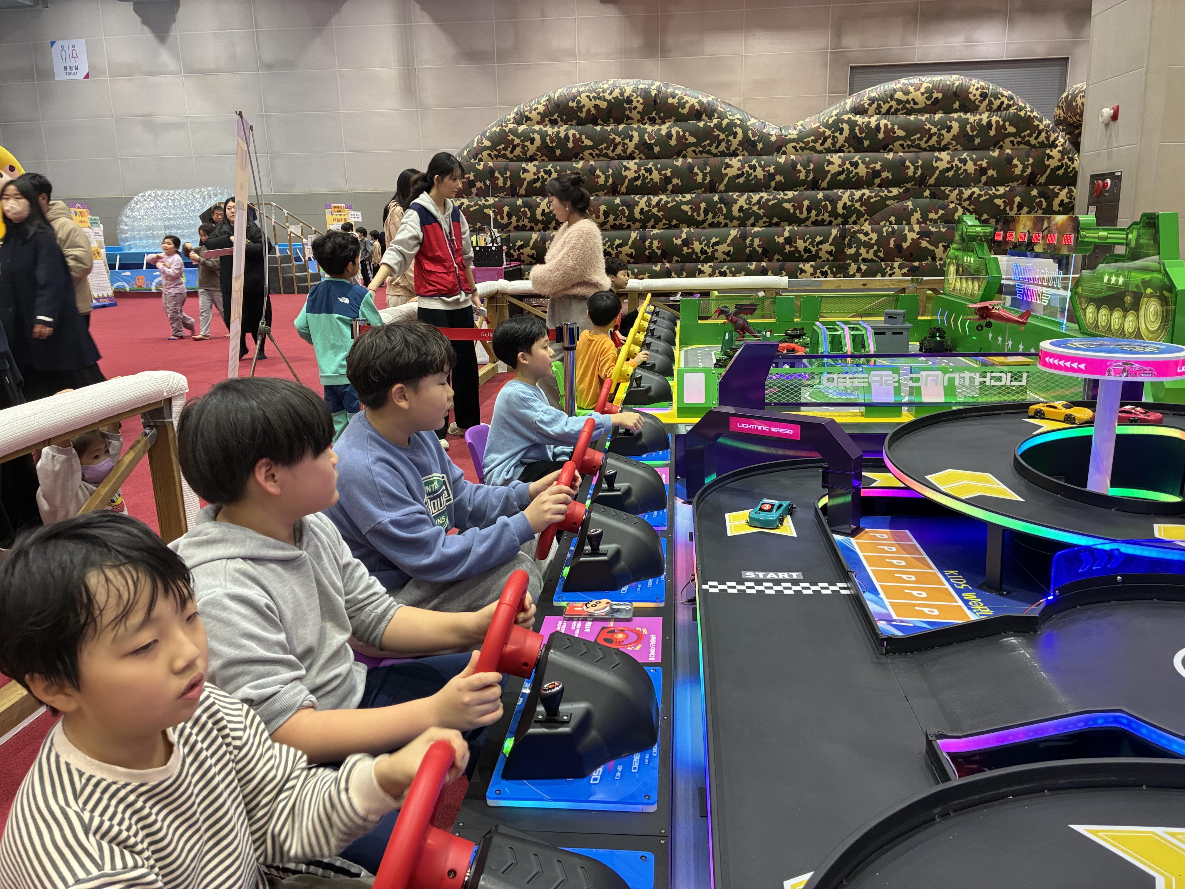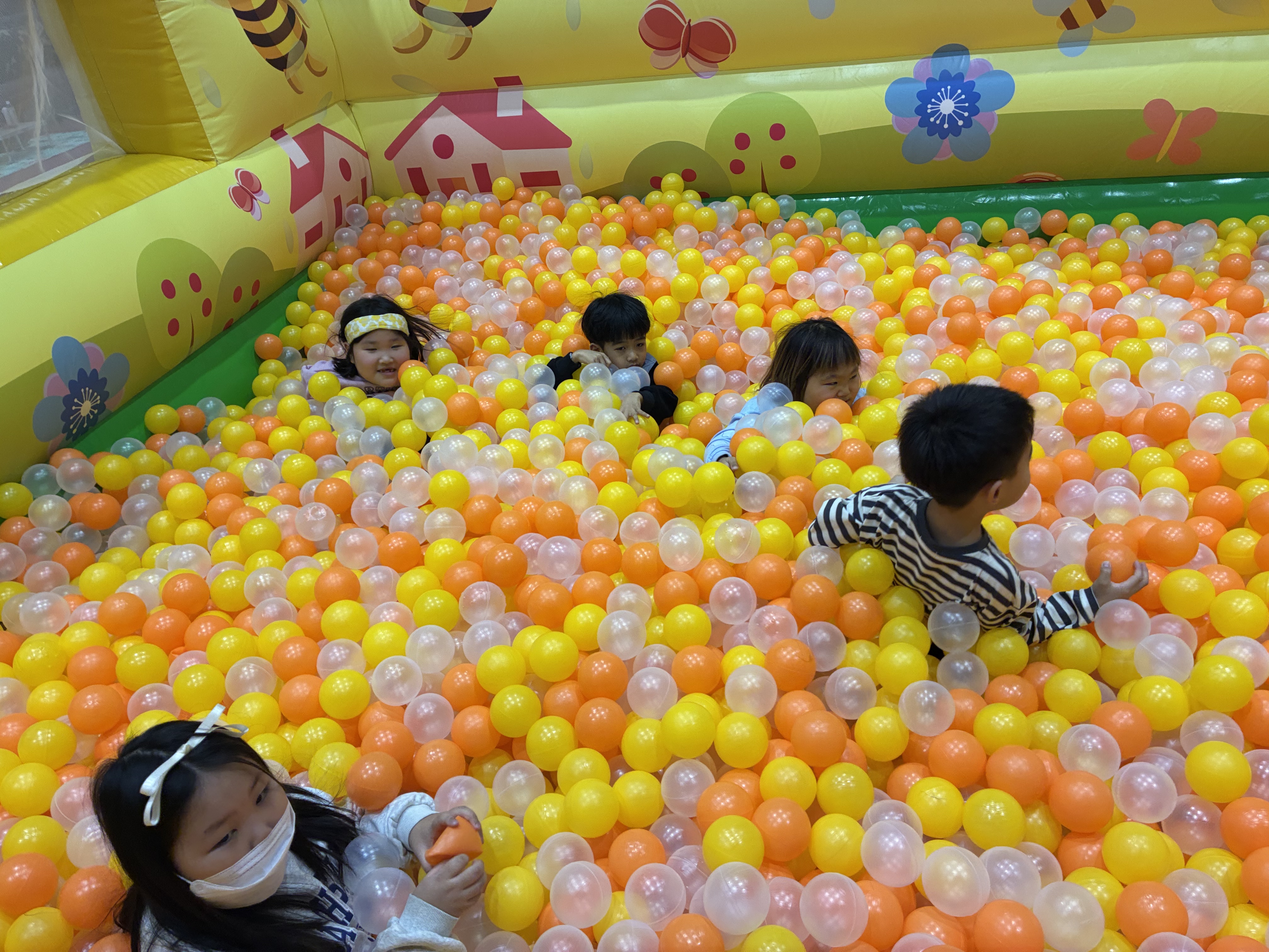 다람쥐통,블럭만들기,RC카,기차,에어바운스,볼풀공 놀이를 하면서