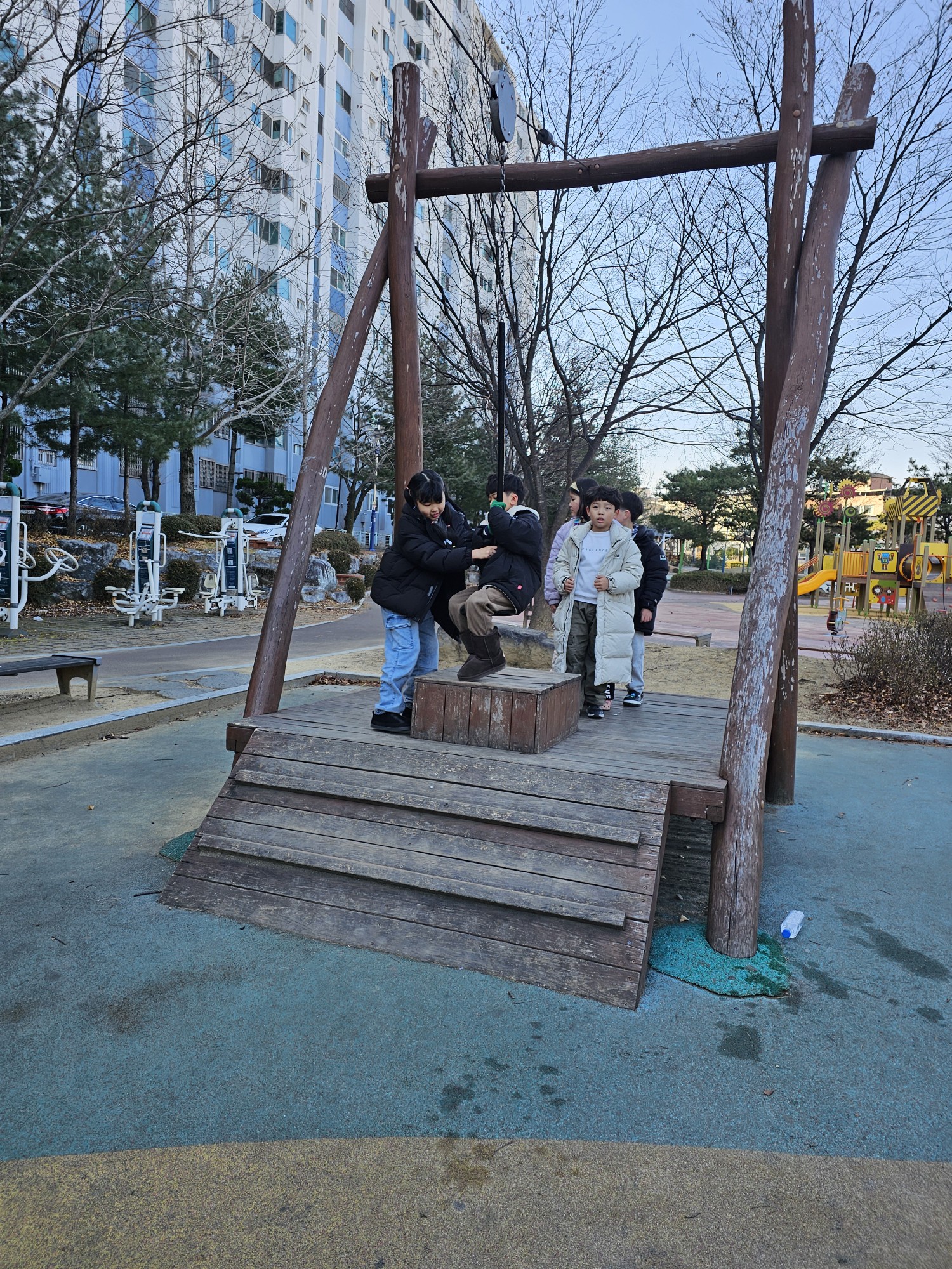 오는 길에 놀이터에서 짚라인도 타고 그네,시소,미끄럼틀도 탔어요~