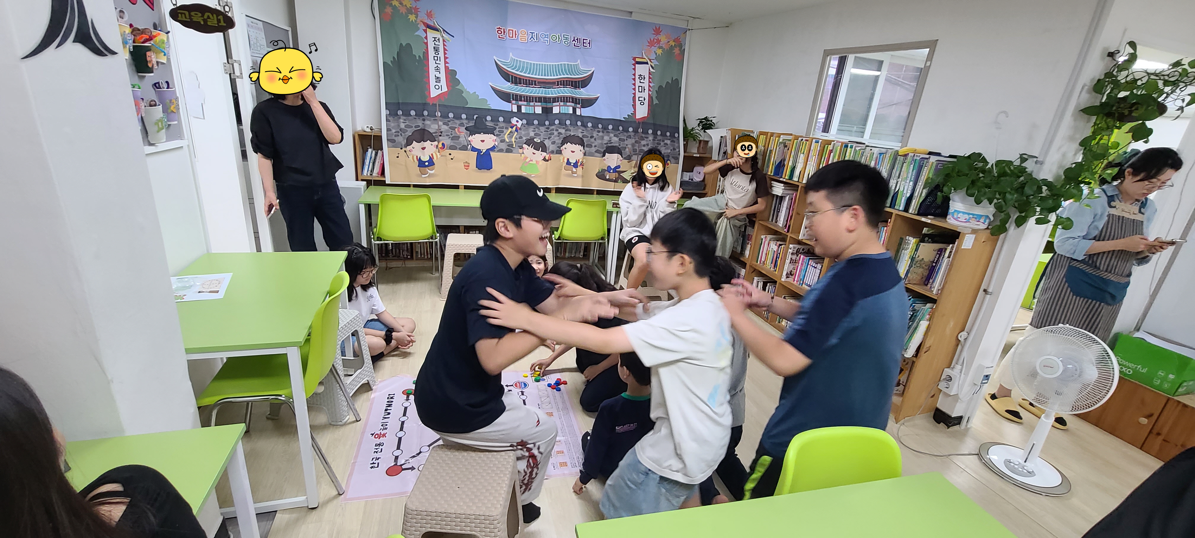 올 추석을 맞아 민속놀이를 즐겼어요. 탈 꾸미기, 몸으로 말해요.투호던지기, 사방치기, 그리고 두팀으로 나누어 언니 오빠 동생들과 한팀이 되어 윷놀이를