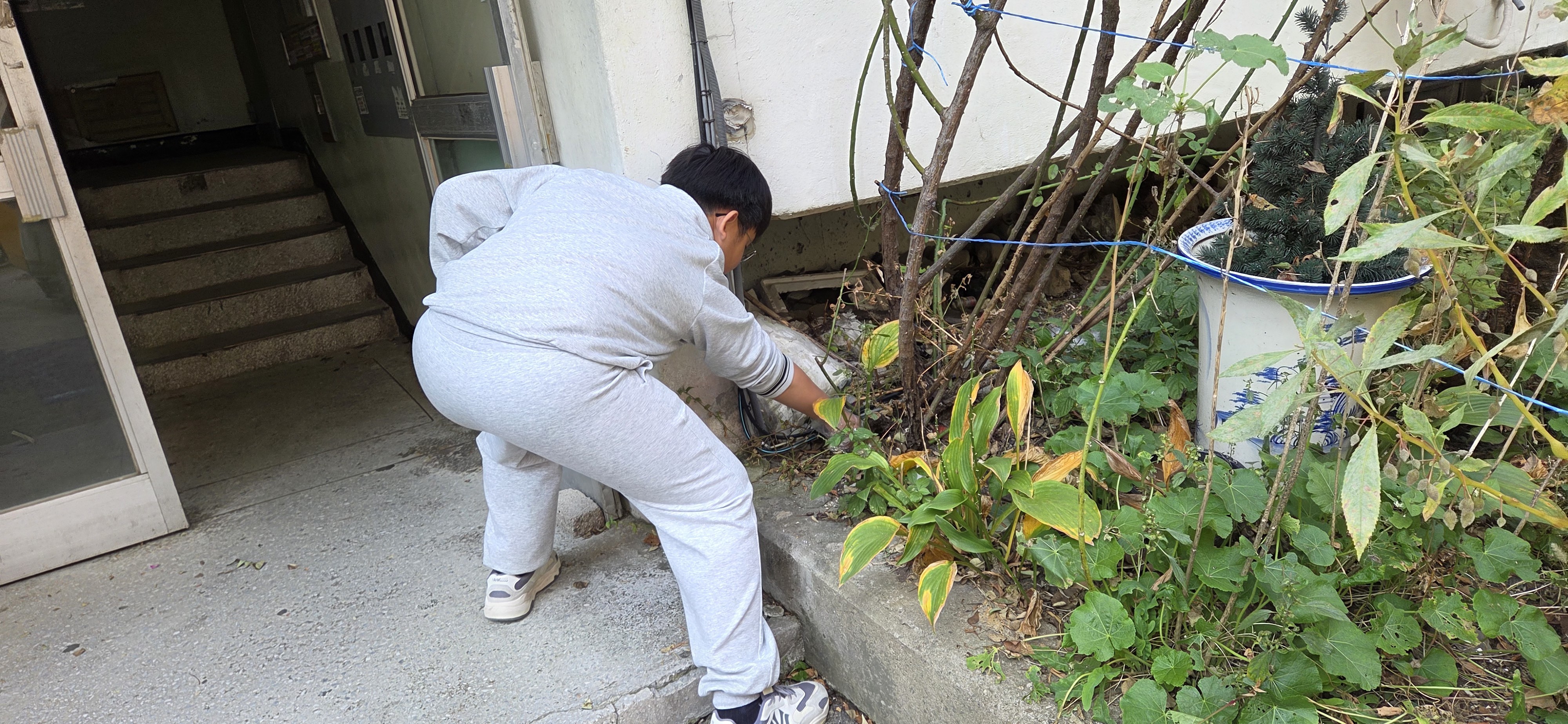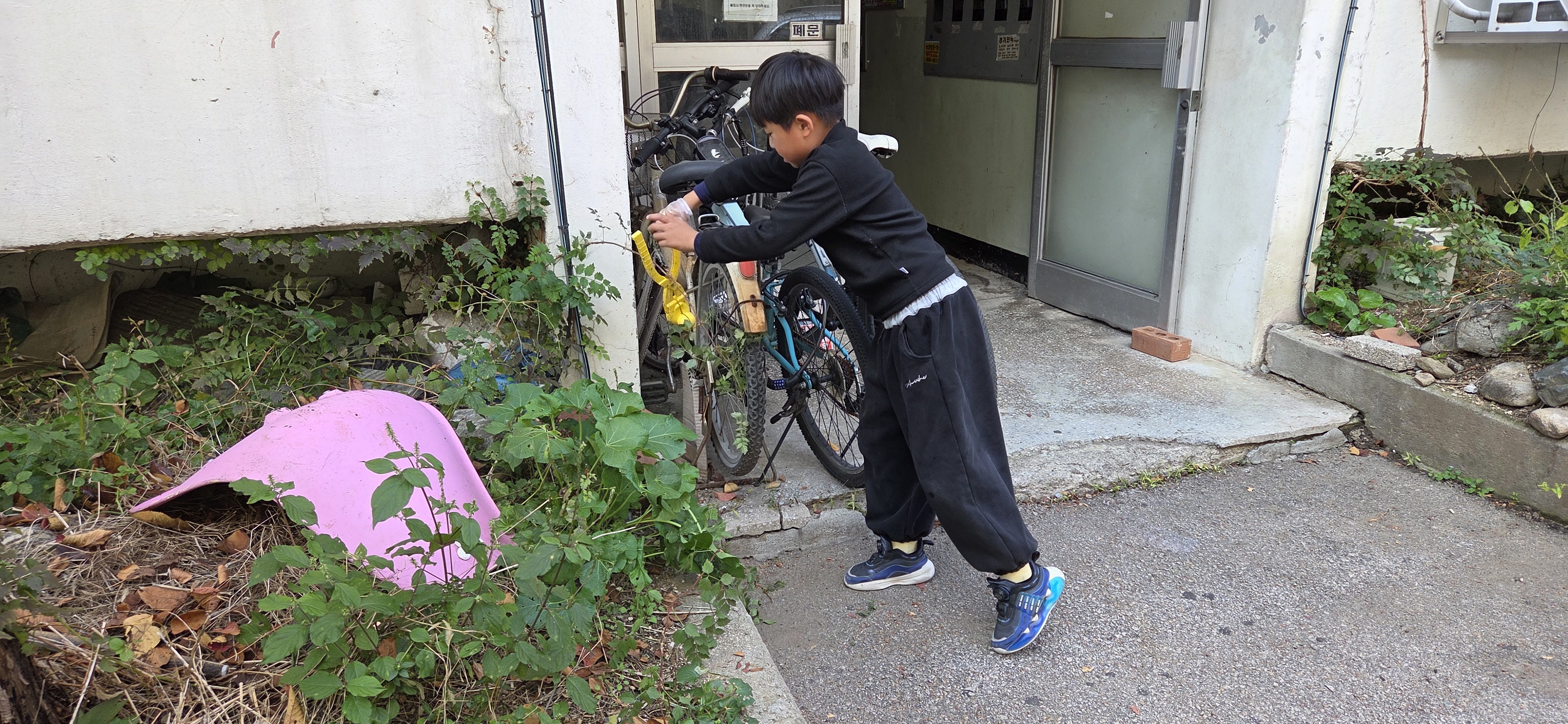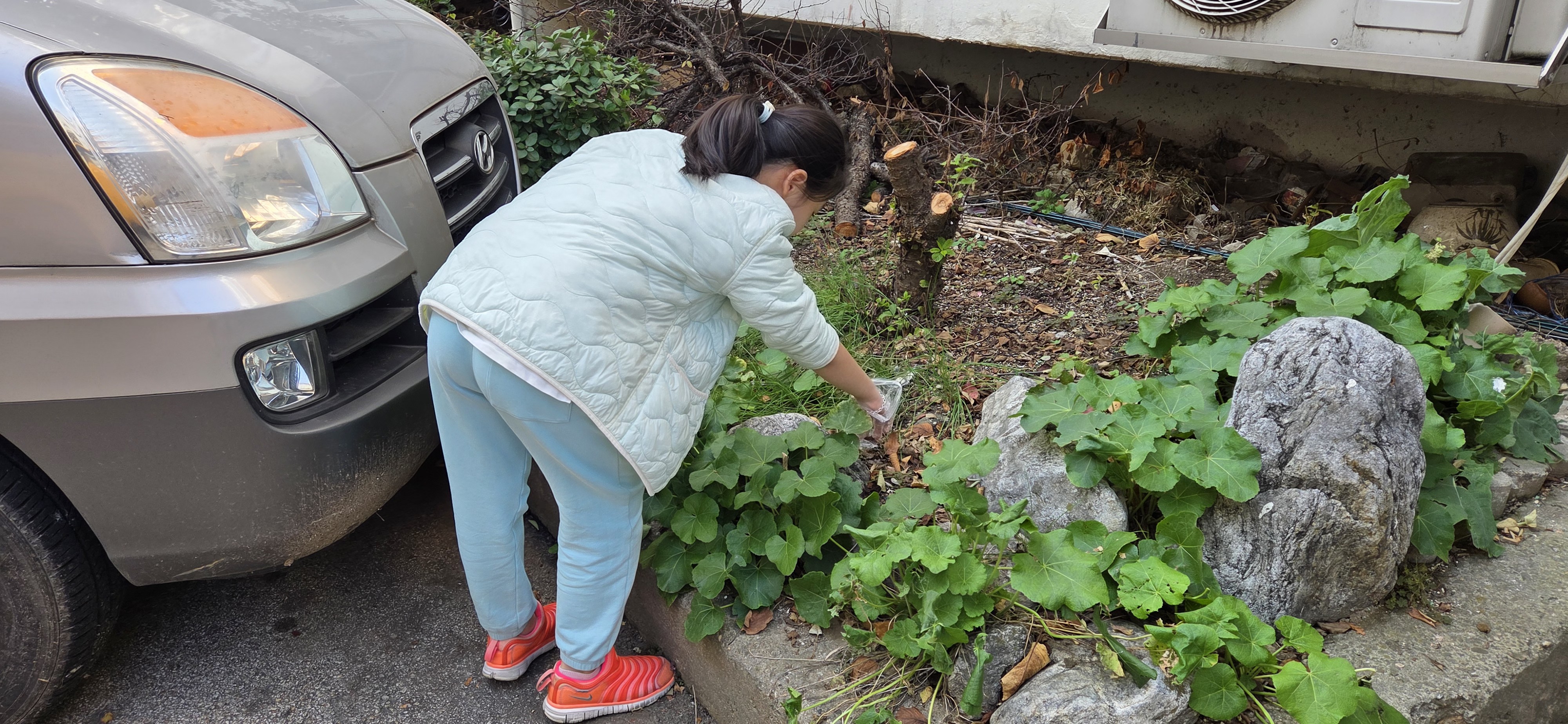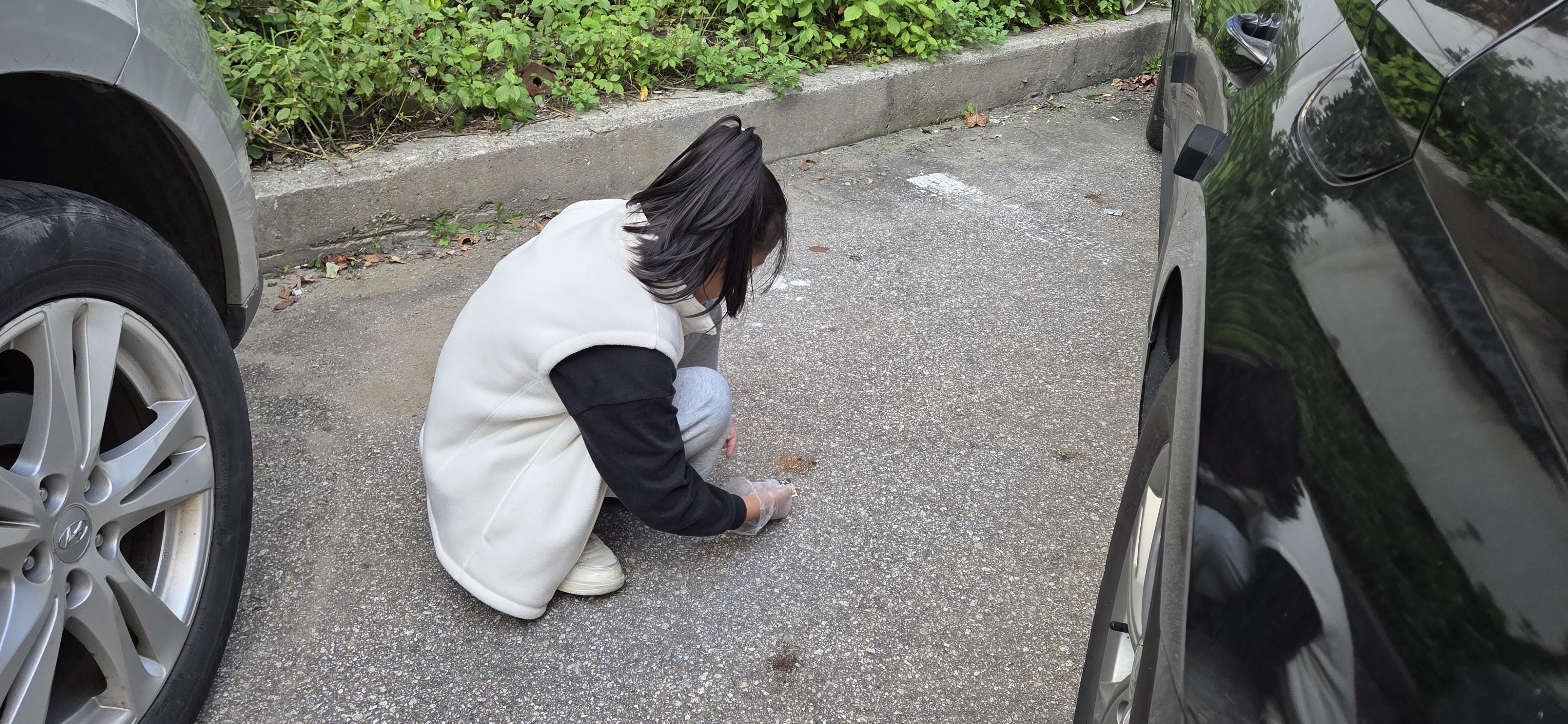 이번에도 센터가 위치한 1004동 앞을 중심으로 활동을 펼쳤는데, 아파트와 아파트 사이의 큰길은 경비원들이 청소를 해 두어 큰 쓰레기는 거의 없었지만, 화단이나 계단 구석진 곳에는 여전히 쓰레기가 많이 쌓여 있었어요.