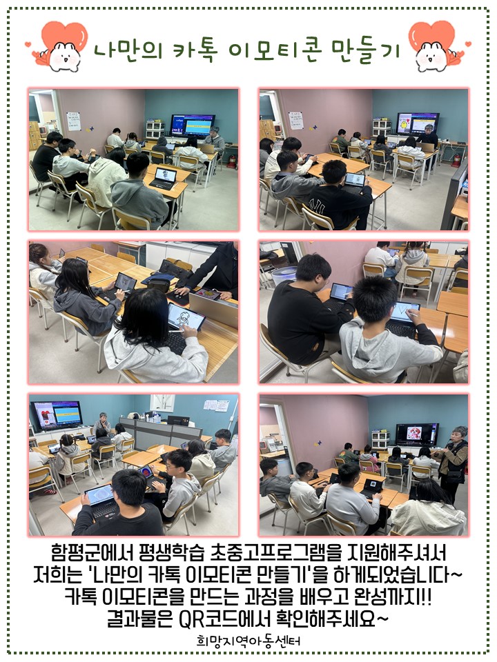 이모티콘을 만드는 방법에 대해 알아보고 나만의 카톡 이모티콘을 만들어 움직이는 이모티콘도 만들면서 새로운 경험을 해보았답니다!