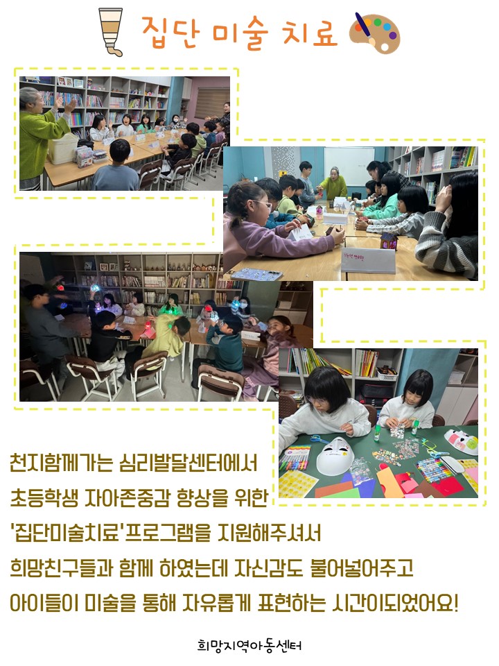 함평 '천지함꼐가는 심리발단센터'에서 희망친구들을 위한 '집단미술치료'프로그램을 해주셨습니다~