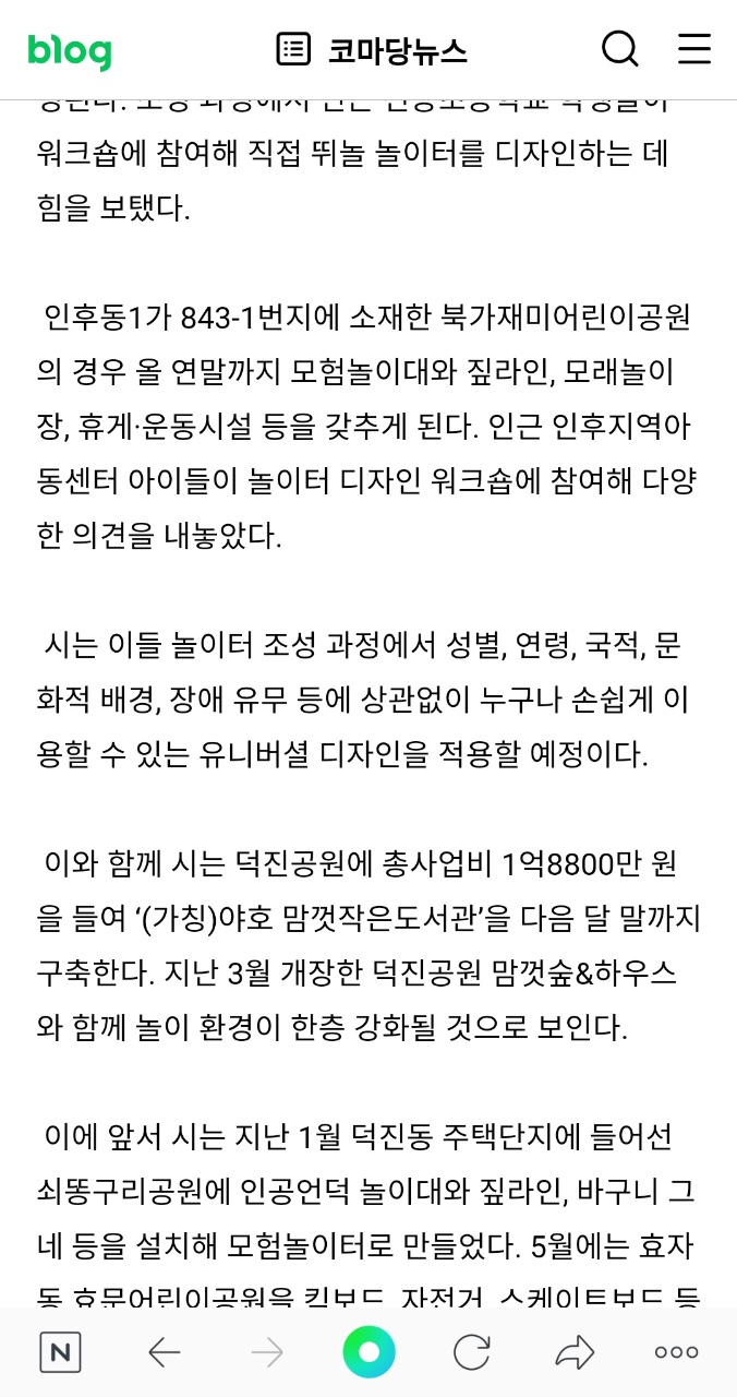 인후지역아동센터 아동들의 북가재미 놀이터 디자인 워크숍 관련 기사