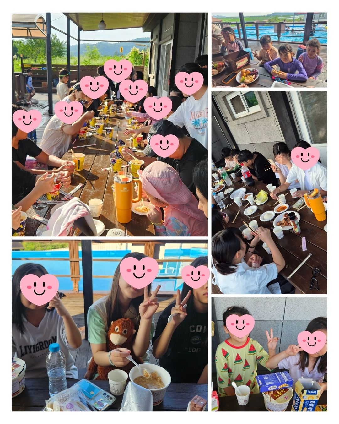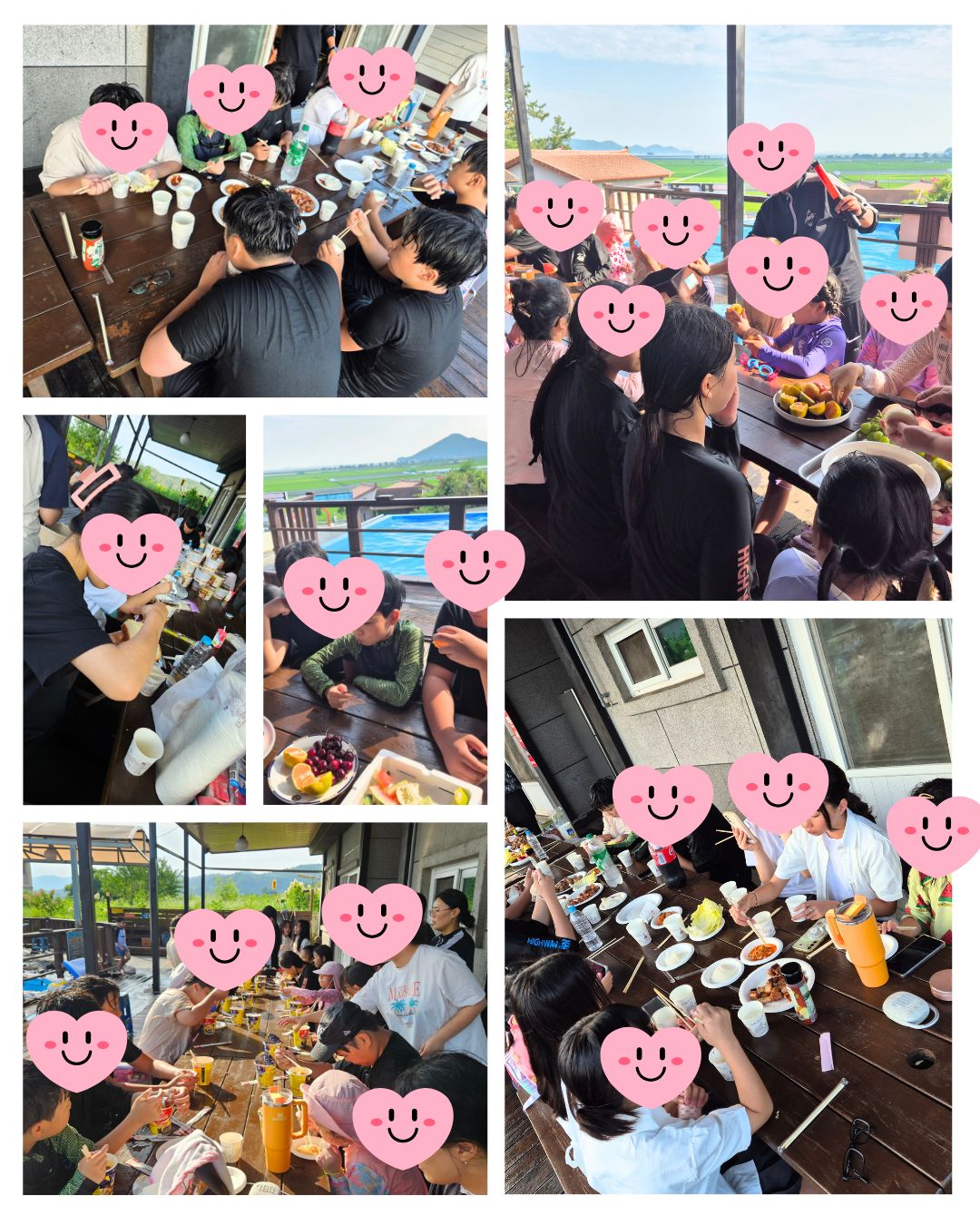물놀이로 행복한 하루를 보낸 뒤, 맛있는 소고기와 달콤한 과일을 나누어 먹으며 아이들이 웃음 가득한 여름캠프의 추억을 만들 수 있었습니다.