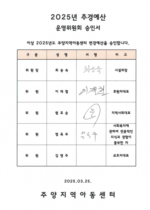 2025년 1차 추경예산 공고합니다.